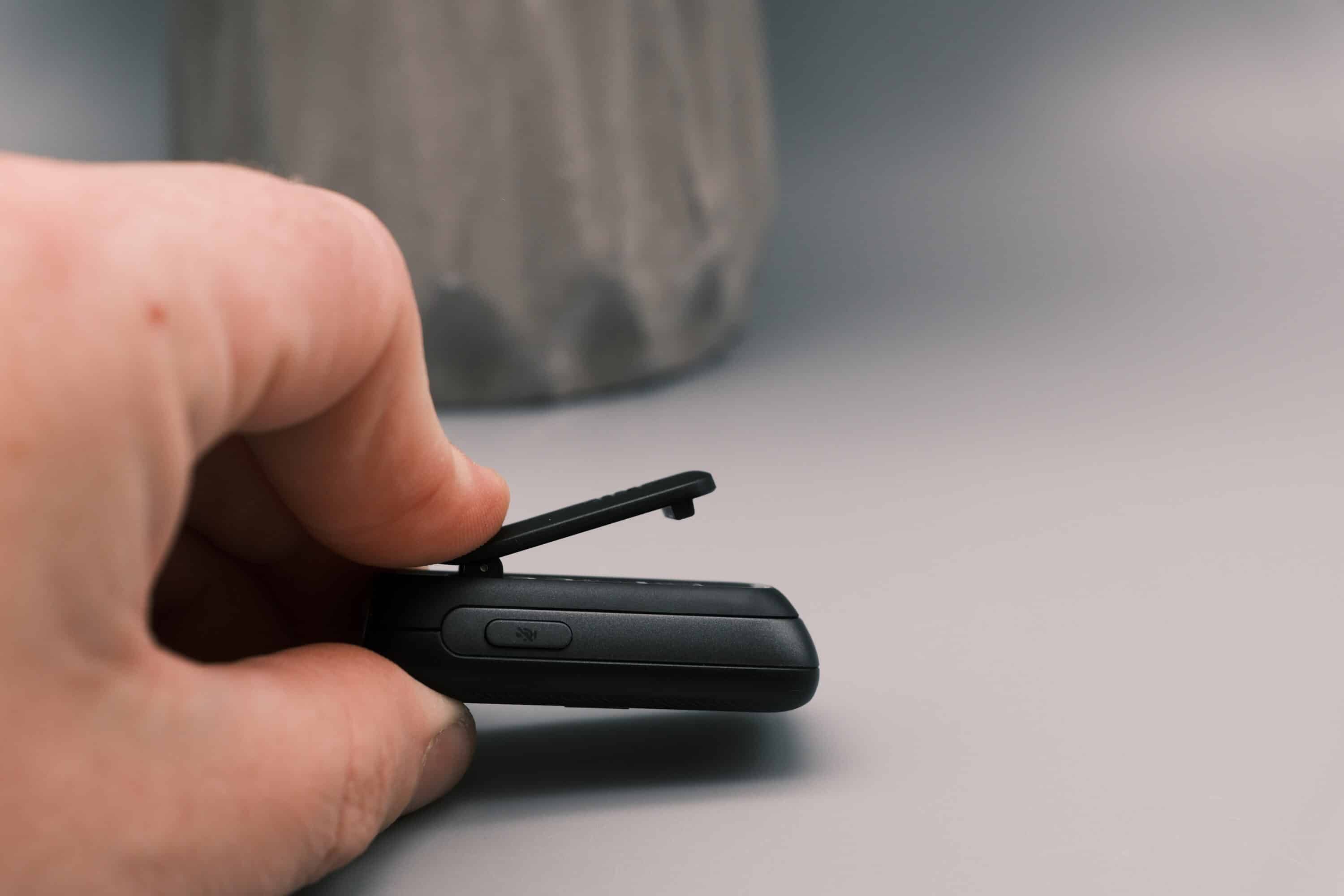 The actual microphone, which records the voice, is located on the top. The windscreen included in the scope of delivery can also be easily attached and removed here. However, the microphone no longer fits into the charging case with the windscreen – unfortunately, there is also no way to stow the puschel away. So caution is advised.