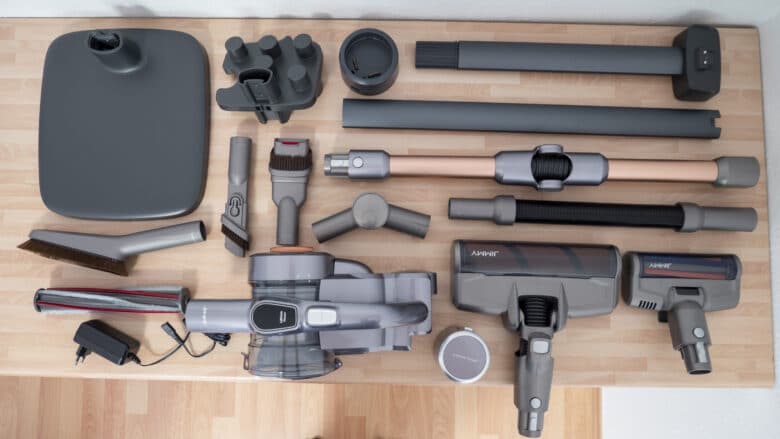 Both the roller brush and the bagless double cup of the JIMMY BD7 Pro can be removed using the latches provided and are washable. This ultimately simplifies cleaning enormously and the accumulated dirt ends up in the bin within a short time. The manufacturer also includes a second HEPA filter in the scope of delivery.
