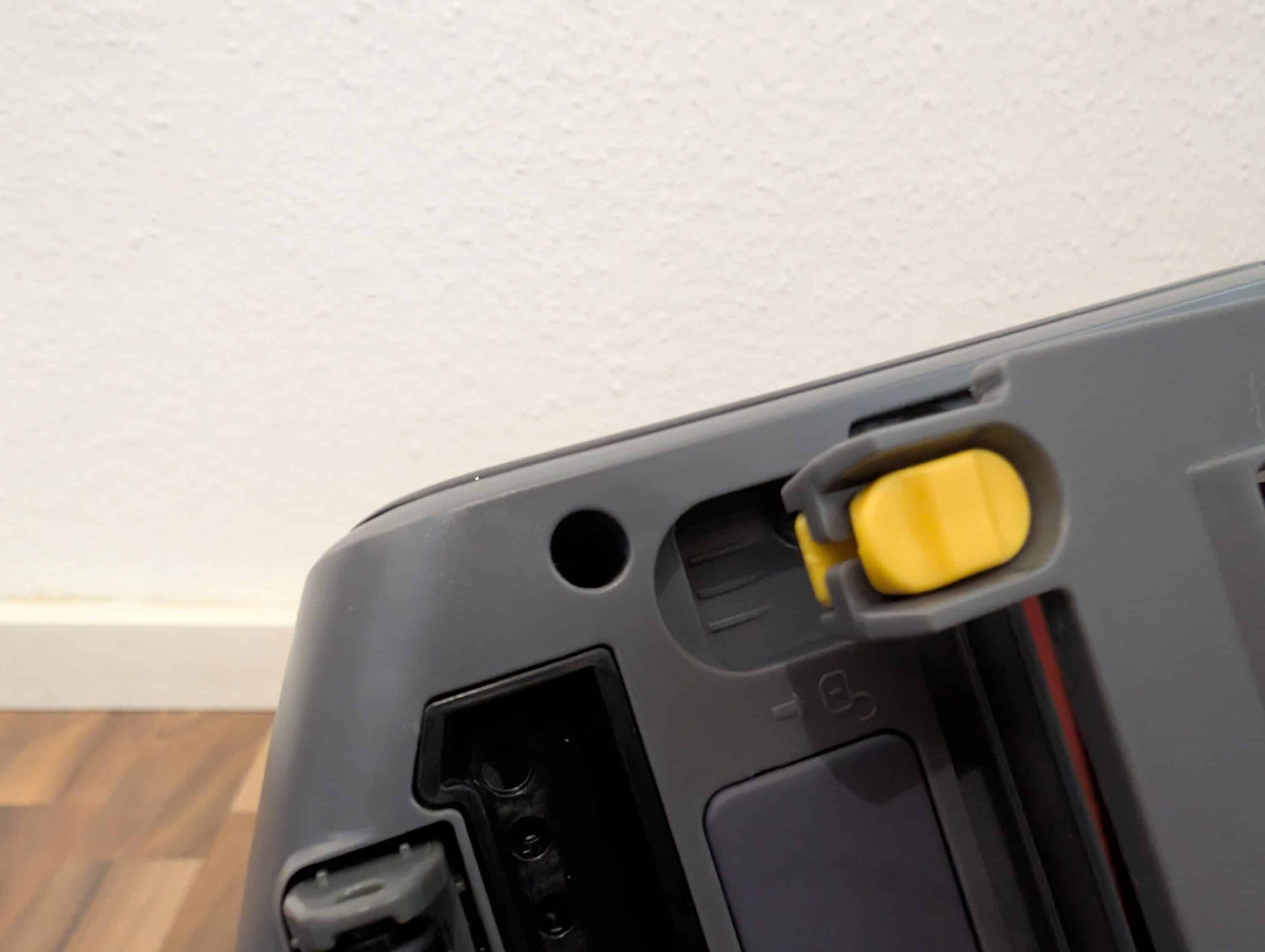 - The brush roller can be easily removed – the two yellow levers on the left and right on the underside of the brush head unlock the roller without tools