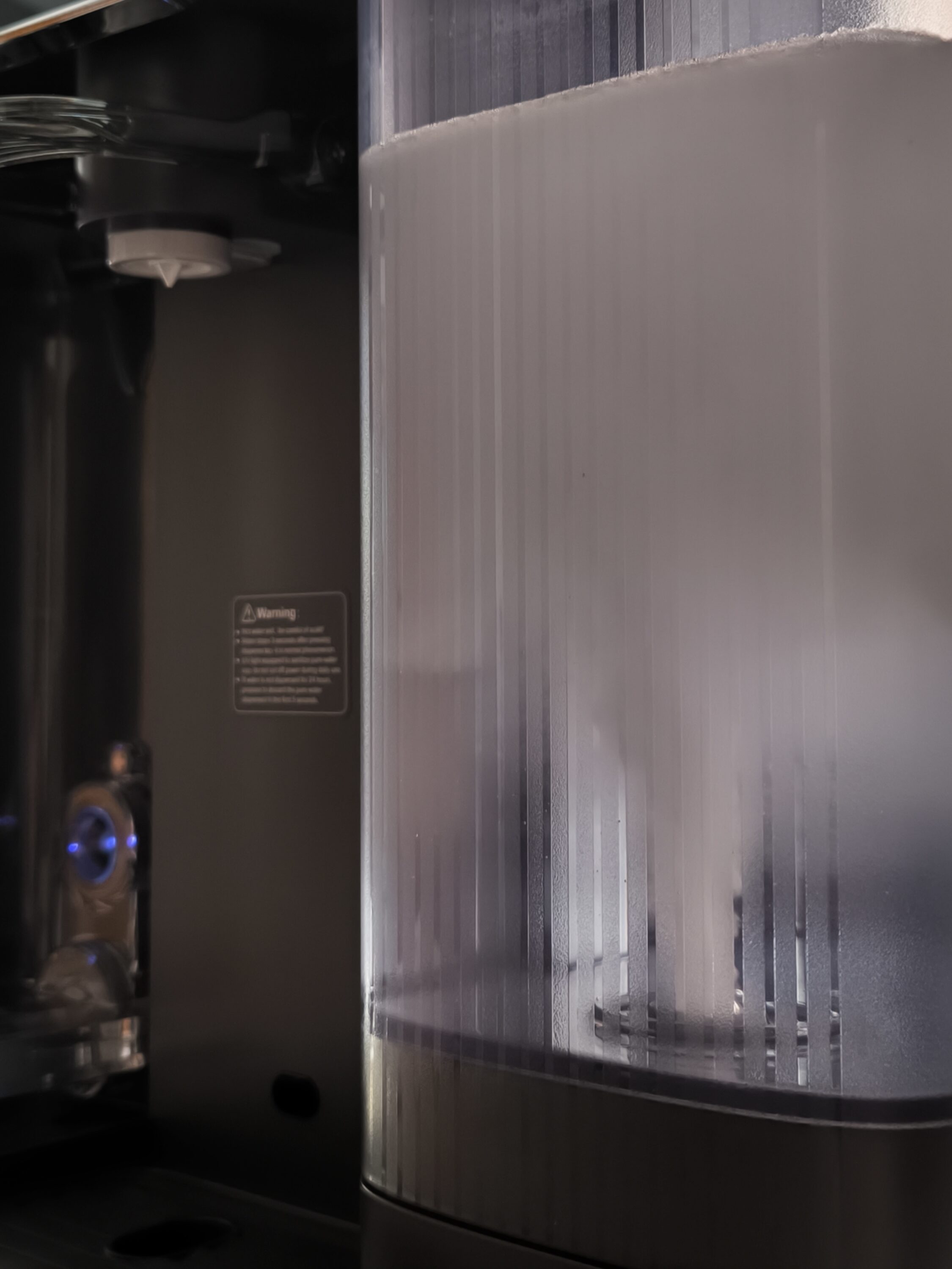 And if the JIMMY R9 is not being used, the display goes into energy-saving mode after around one minute and dims. In terms of general power consumption, the R9 consumes around 24 watts when actively filtering water, while the machine manages with around 2 or 0.5 watts in standby mode. When heating water to around 98 degrees Celsius, the machine again consumes 2,200 watts.