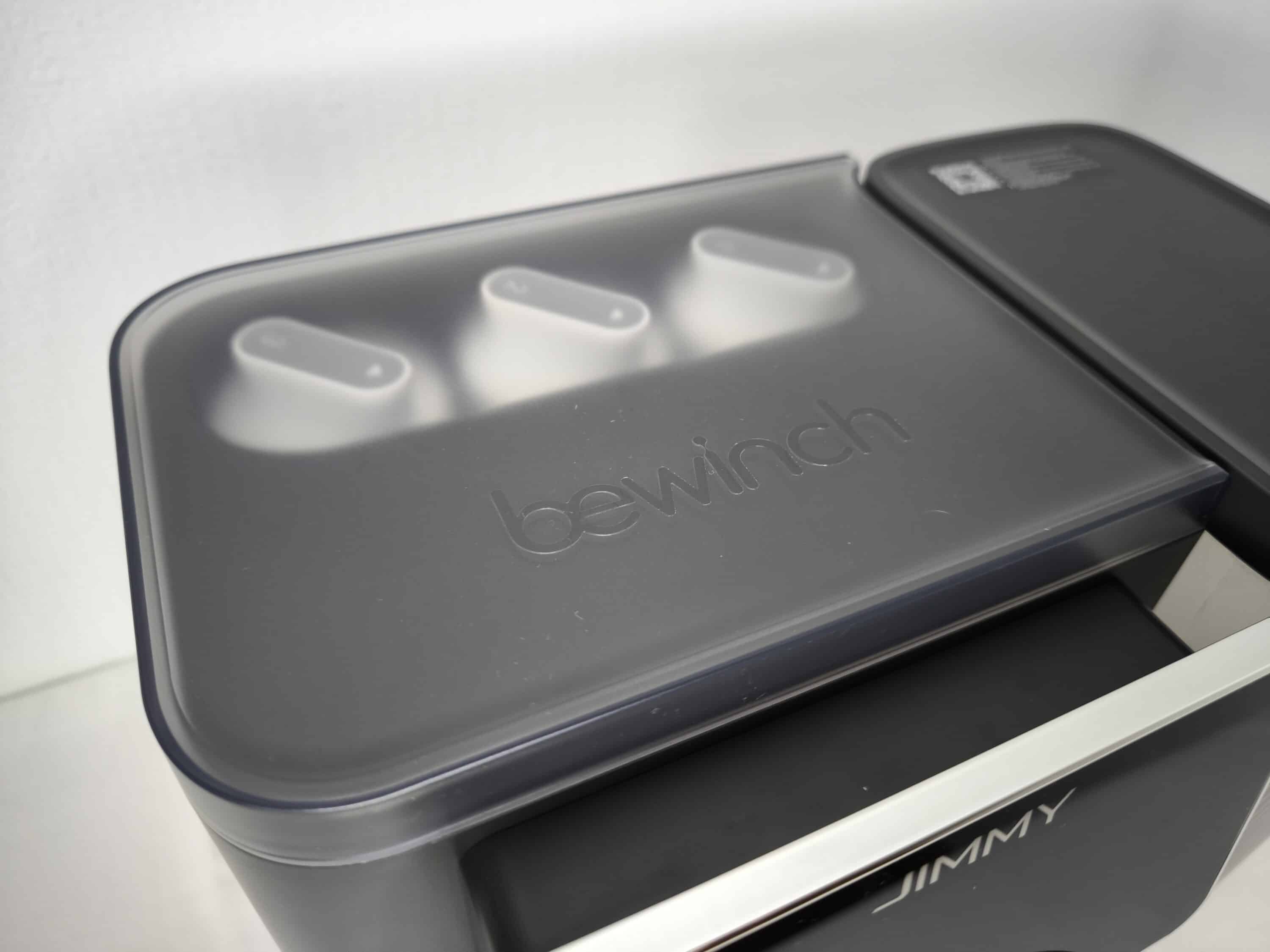 The quick heat-up function is also particularly practical for everyday use. The JIMMY R9 delivers hot water in around three seconds – much quicker than conventional kettles. The Tritan carafes are similarly uncomplicated, as they can simply be inserted and are then filled automatically. Meanwhile, a UV lamp in the slide-in compartment constantly kills germs in the water container. This can be recognized by the blue illumination when inserted. The filling capacity is also impressive. We prefer the 1-liter Tritan carafe of the JIMMY R9 to the 615 ml glass carafe of the sparkling water maker for everyday use.