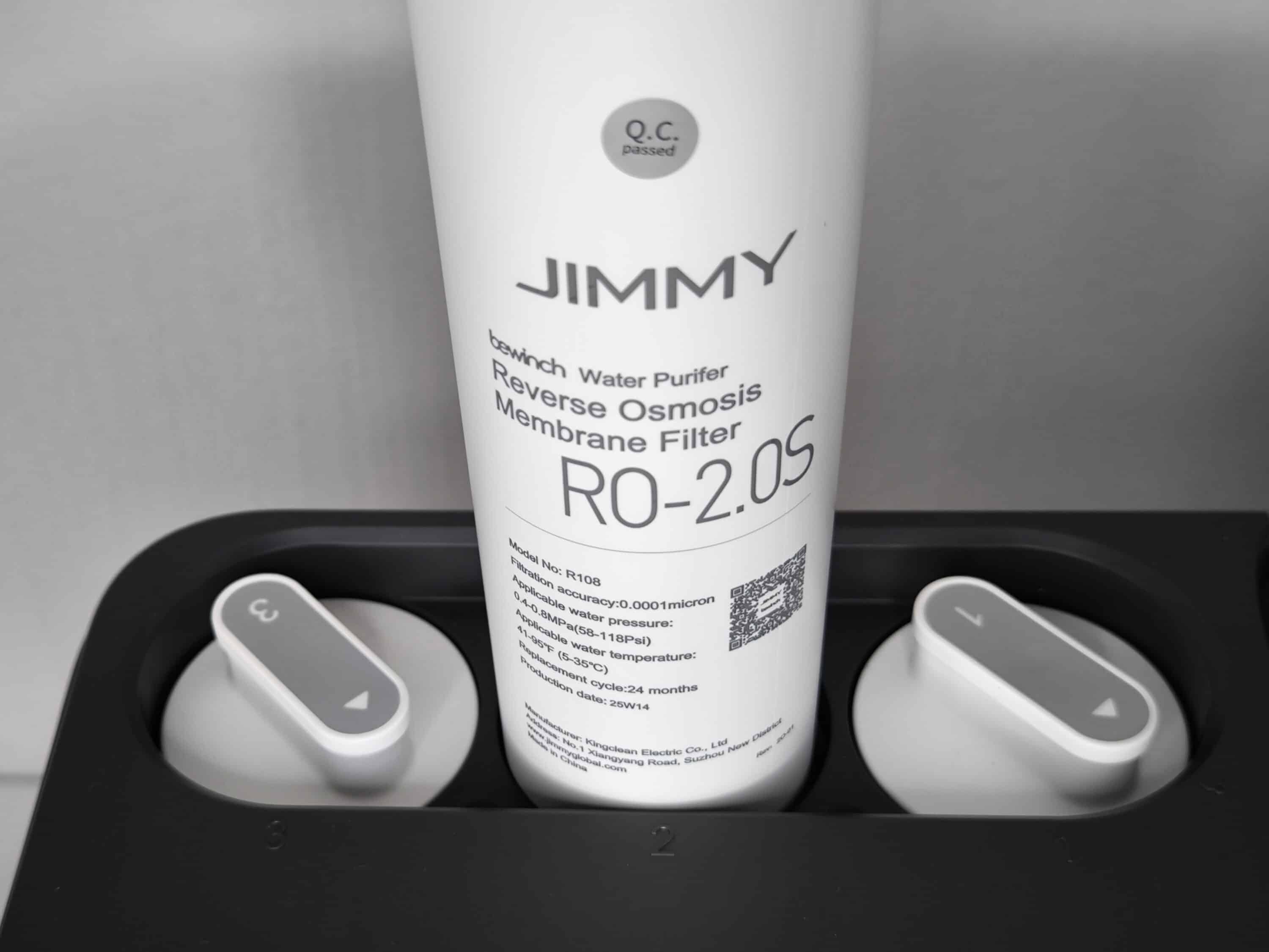 The JIMMY R9 is factory-fitted with three filters, which can be easily replaced from above by simply turning them. This makes the maintenance process comparatively convenient, while the machine itself continuously monitors the filter performance. The 7-stage filter system inside ensures clean water. As a result, the reverse osmosis water purifier achieves filtration down to a size of 0.0001 microns and thus removes almost all pollutants in the water.