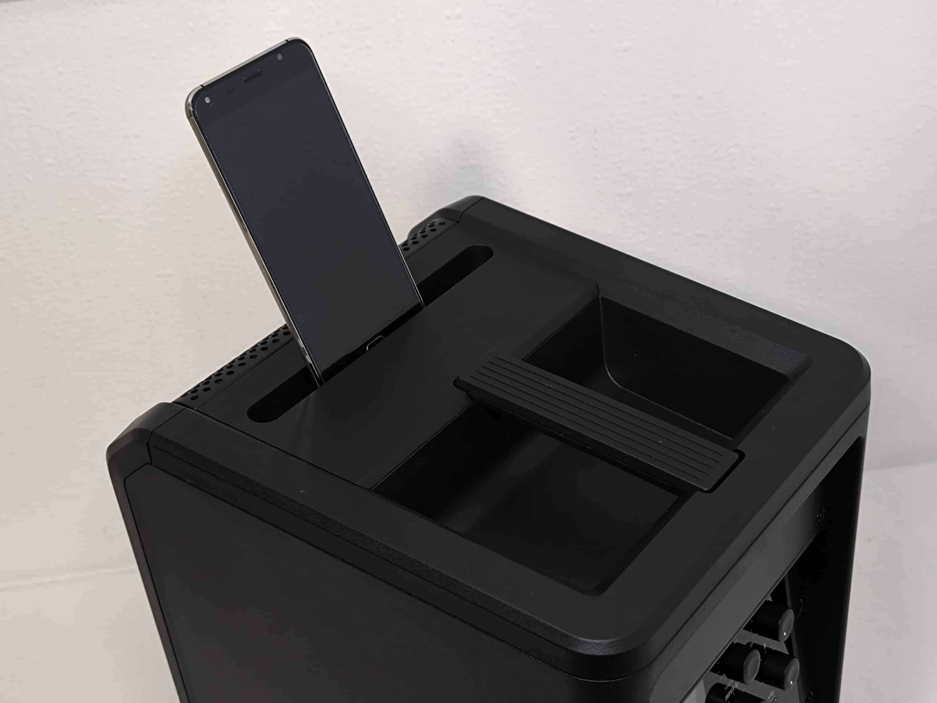 For preset fans, there are five variants to choose from: Music, Live, Vocal, Eco and Flat. If you prefer a bit more bass and power, choose Music, while Eco mode is the preferred choice for longer use. The EQs for highs, mids and lows are equipped with a control range of -12 to +12 dB. The general volume is even more extensive and ranges from -80 to +12 dB. Bluetooth 5.0 and the SBC and AAC audio codecs are also supported. On the other hand, anyone interested in aptX will be left out in the cold. During the test with our Android smartphone, only SBC was available. Of course, this shouldn’t make too much of a difference with loudspeakers, but the difference would be more noticeable with headphones.