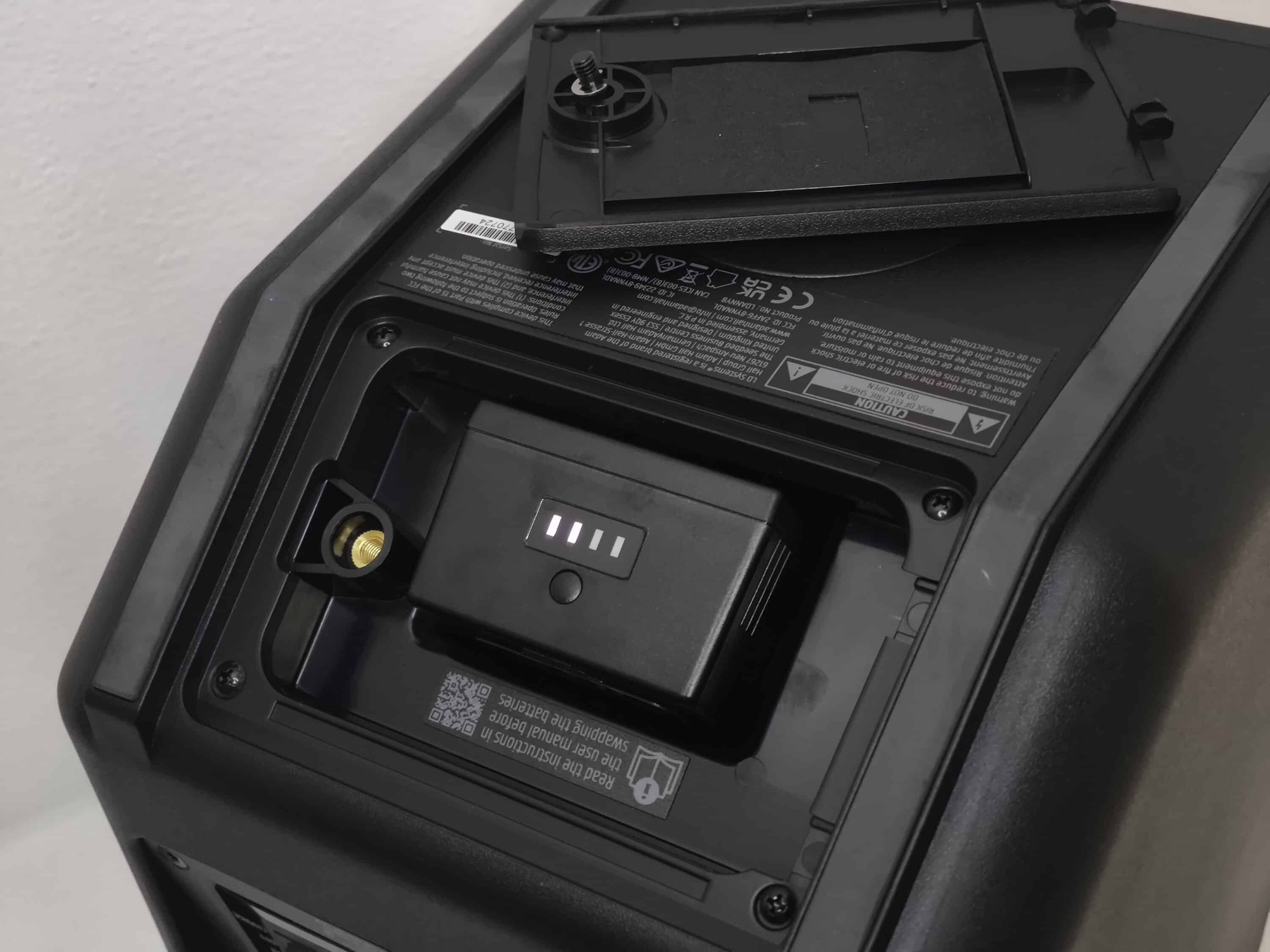 In terms of battery life, the small active speaker in the ANNY series lasts up to 11 hours without interruption. The condition is that the speaker is operated in Eco preset, which can be found in the settings. If the LD Systems ANNY 8 is pushed to its limits, i.e. the controls are turned all the way up and the preset is used for music, this results in a runtime of approx. 3.5 hours. If the battery runs out, it can be recharged as usual or, if it has to be done quickly, it can be removed and replaced directly. The battery compartment is located on the underside of the device. The replaceable battery has a capacity of 5,000 mAh and takes approx. 5 hours to fully charge. LD Systems offers additional exchangeable batteries for purchase in its online store.