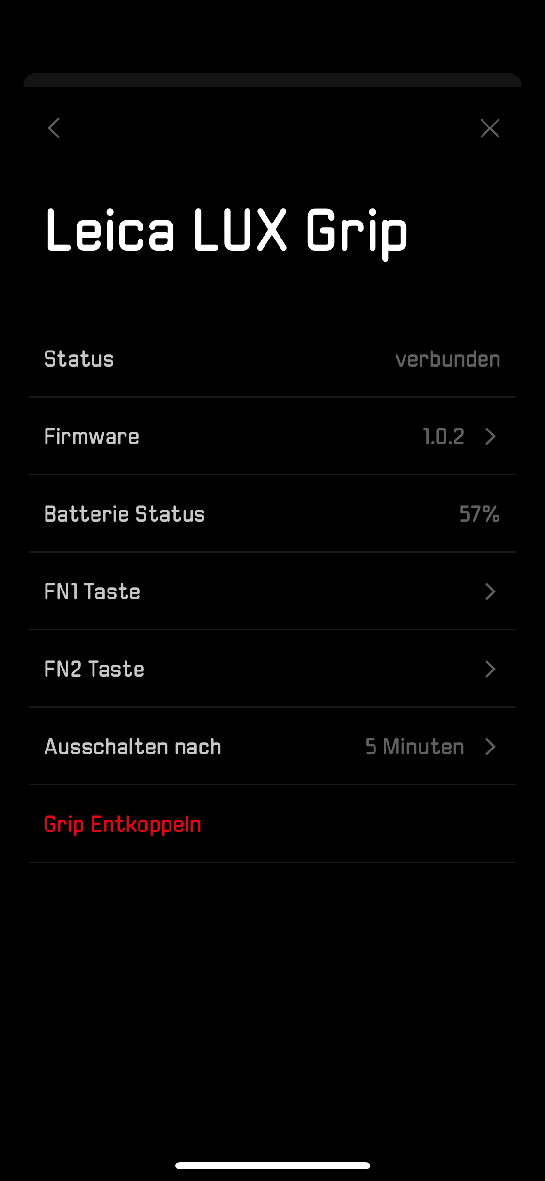 In the app, you can specify after how many minutes of non-use the LUX Grip should automatically switch itself off. Longevity is ensured by the fact that the battery can be replaced if it loses its total capacity or otherwise gives up the ghost. Incidentally, Leica emphasizes in the Quick Start Guide that the battery must be replaced by an authorized service center.