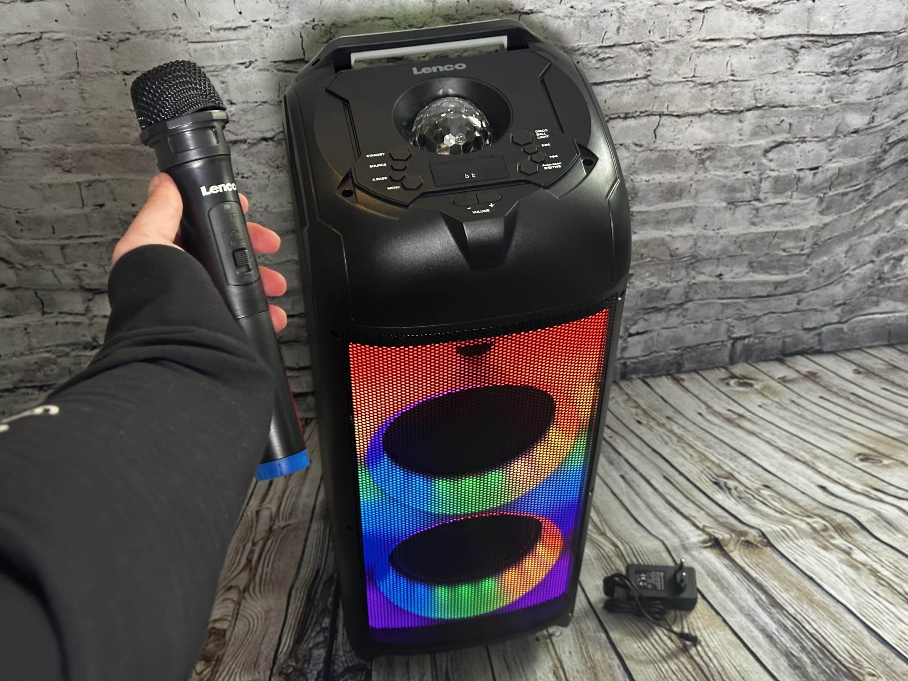 As you have surely all noticed, summer is here and outside it is getting warmer and warmer. For us Germans, this means that the grill is fired up again and the first outdoor barbecue parties are celebrated. A proper party also requires the right music – and for this we have been provided with exactly the right product from Lenco in this review. The Lenco PA-260BK is a party speaker with a disco ball and RBG lighting on the front, which is equipped with a tweeter, an 8″ woofer and an 8″ subwoofer. Find out if the PA-260BK is worth it for your next party in the following lines!