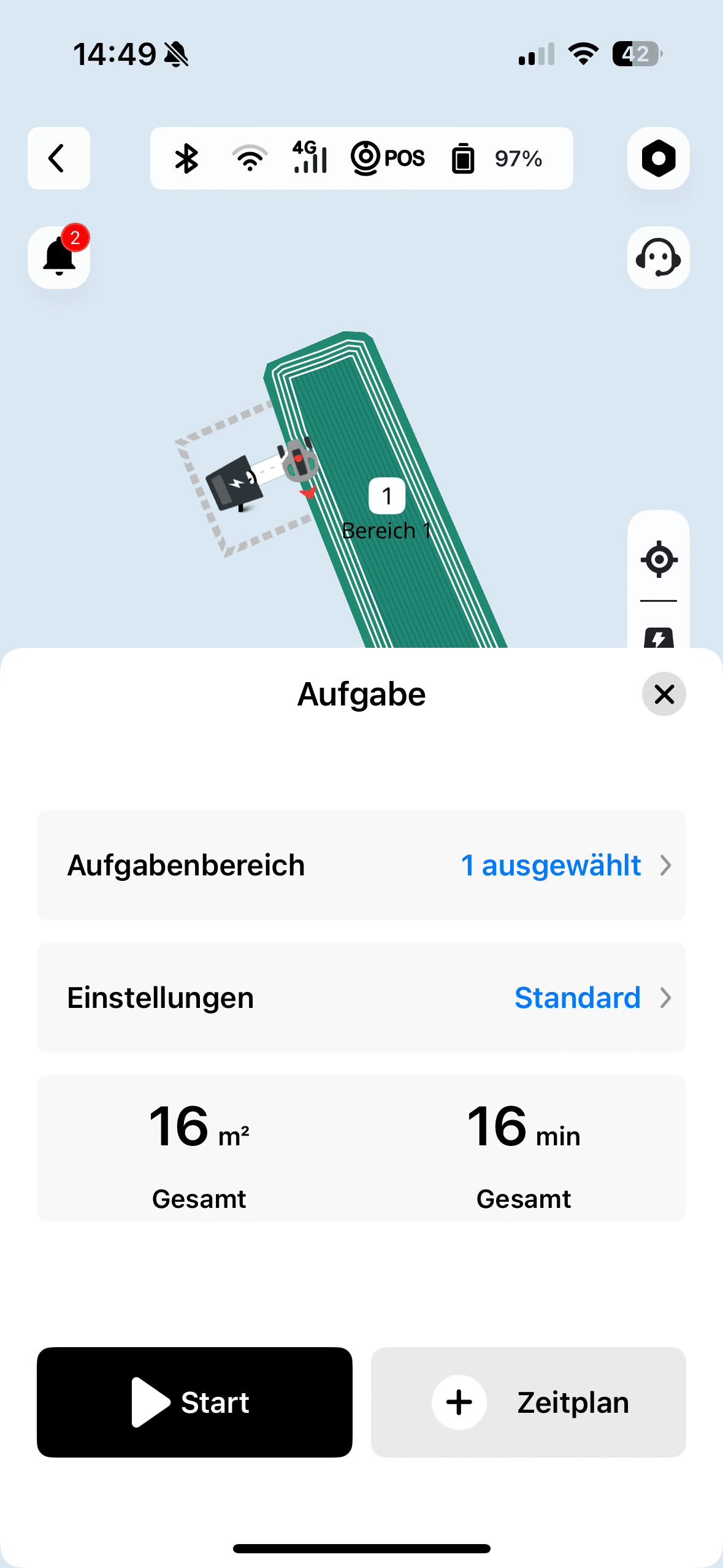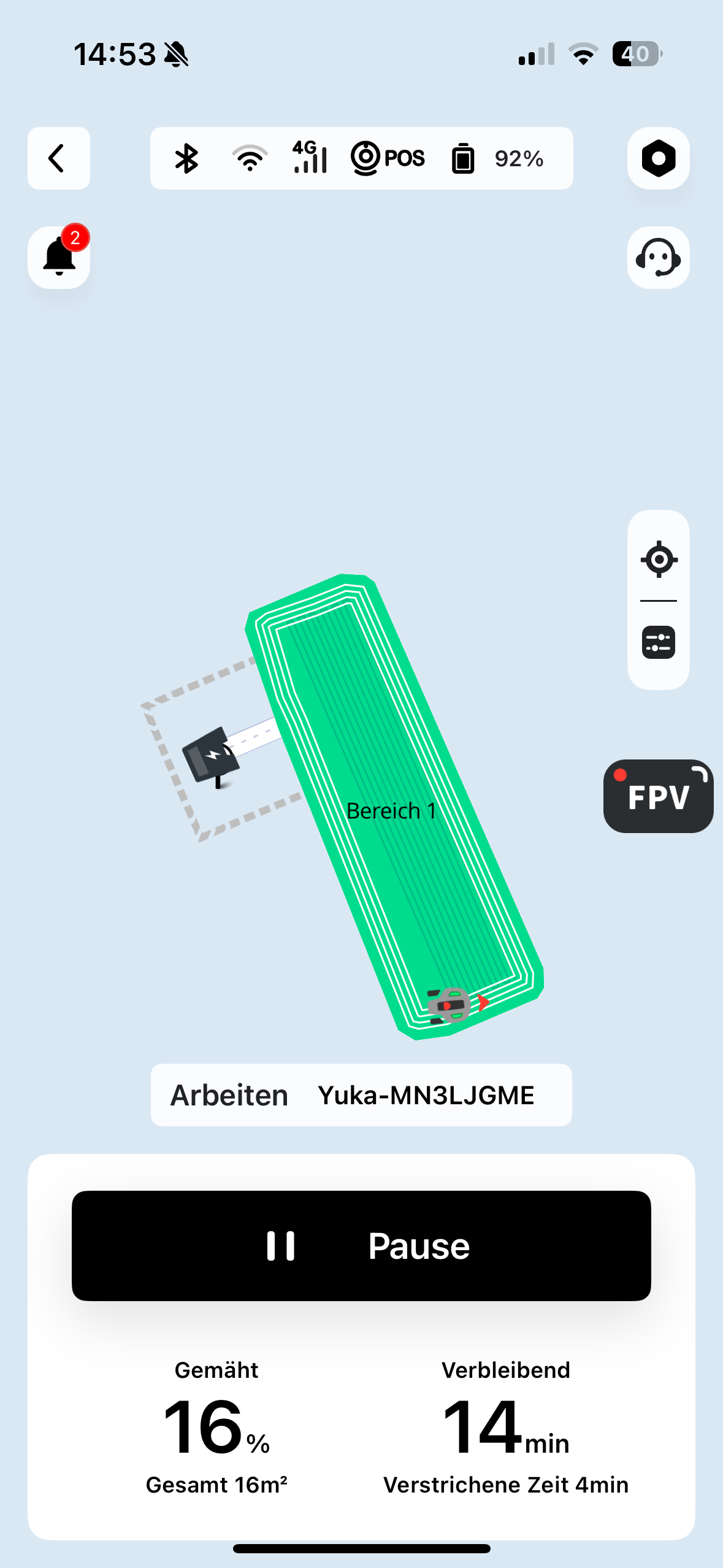 It is important that there are fixed boundaries such as walls or at least lawn edges. Alternatively, you can maneuver the Yuka Mini 600 like a remote-controlled car to define the boundaries of the mowing area. You can define up to 15 different zones in this way. At the end, you have the finished map, which you can then edit again if necessary.