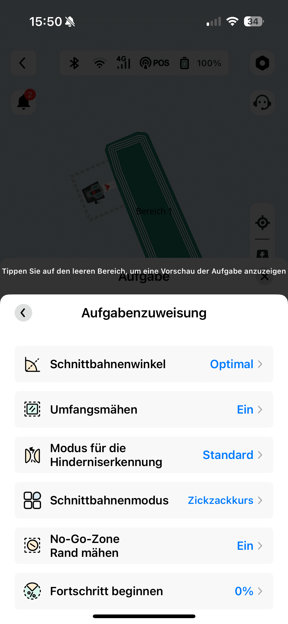 The Mammotion app scores with a very good overview. Even newcomers should be able to find their way around without any problems. The manufacturer scores with many different setting options. For example, you can adjust the mowing pattern and the sensitivity of the obstacle detection to suit your mood.