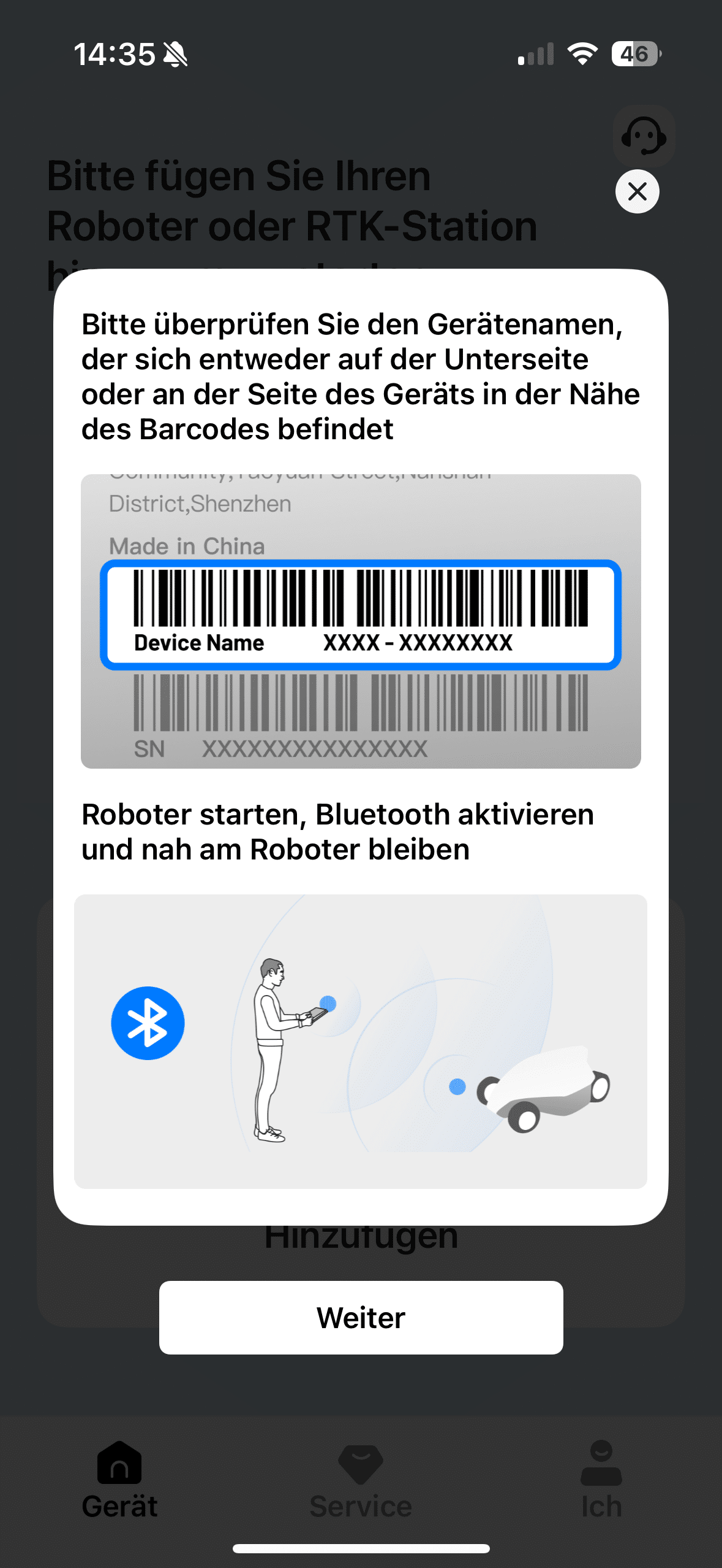 On top of that, you should ensure a reliable fastening. You have the choice of fixing the antenna to soft ground with a peg or screwing it to the wall of your house. Now you just need to connect the antenna to the power supply and the installation is complete. Now it’s time to continue with your smartphone. Download the Mammotion app and create an account. Once you have done this, add the Yuka Mini 600 and the RTK antenna as new devices.