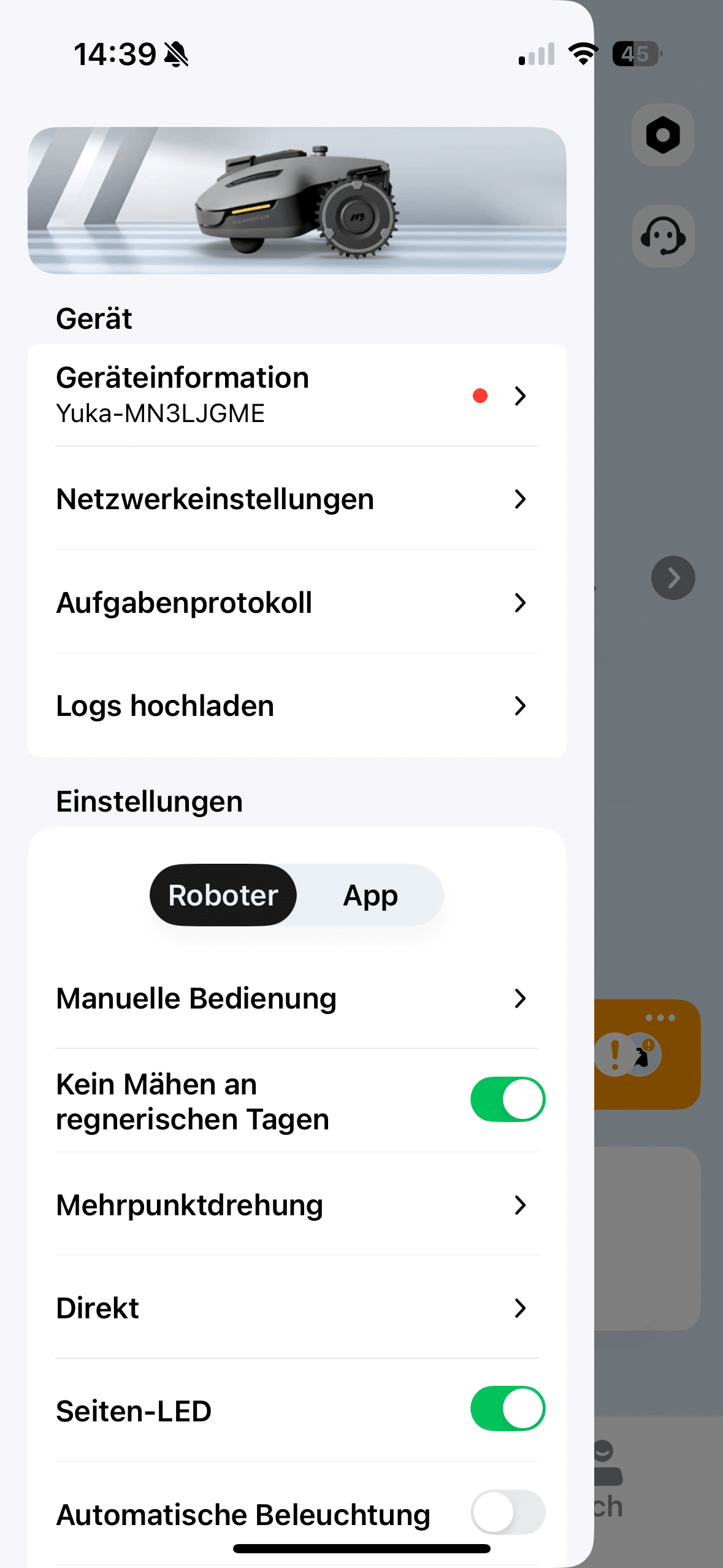 A fun gimmick in the app makes use of the camera unit at the front. This allows you to use the Yuka Mini 600 as a mobile surveillance camera for your garden. It can also be linked to the tried-and-tested voice assistants Google Assistant and Amazon Alexa.