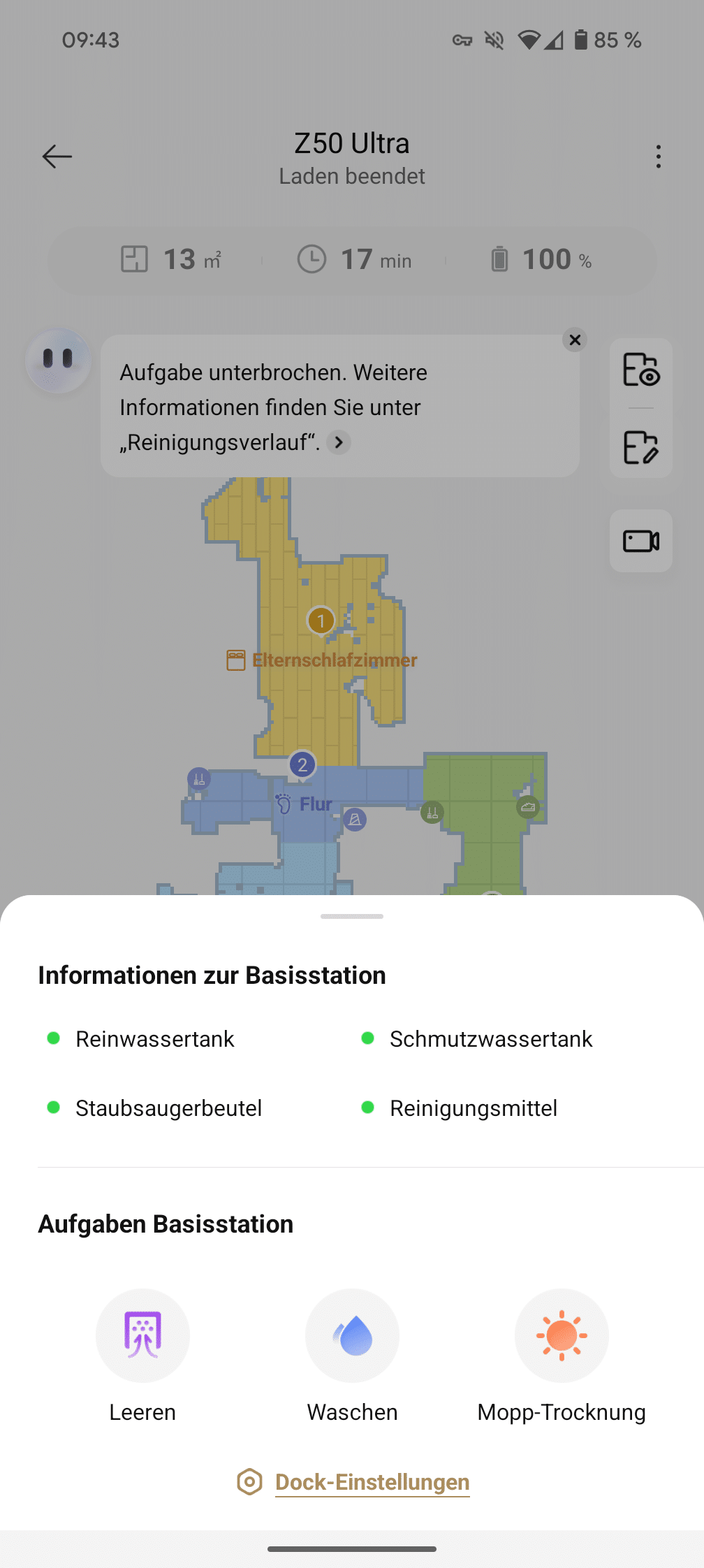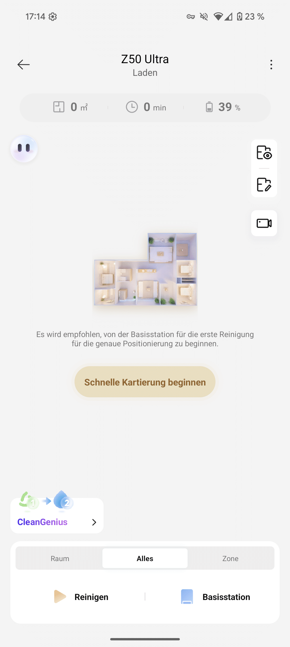 The Z50 Ultra is definitely not the quietest of its kind. When just vacuuming, the background noise is still within acceptable limits, but as soon as the mopping roller becomes active, the noise level increases noticeably. Particularly annoying is the penetrating beeping during the mopping process, which can quickly get on your nerves.
