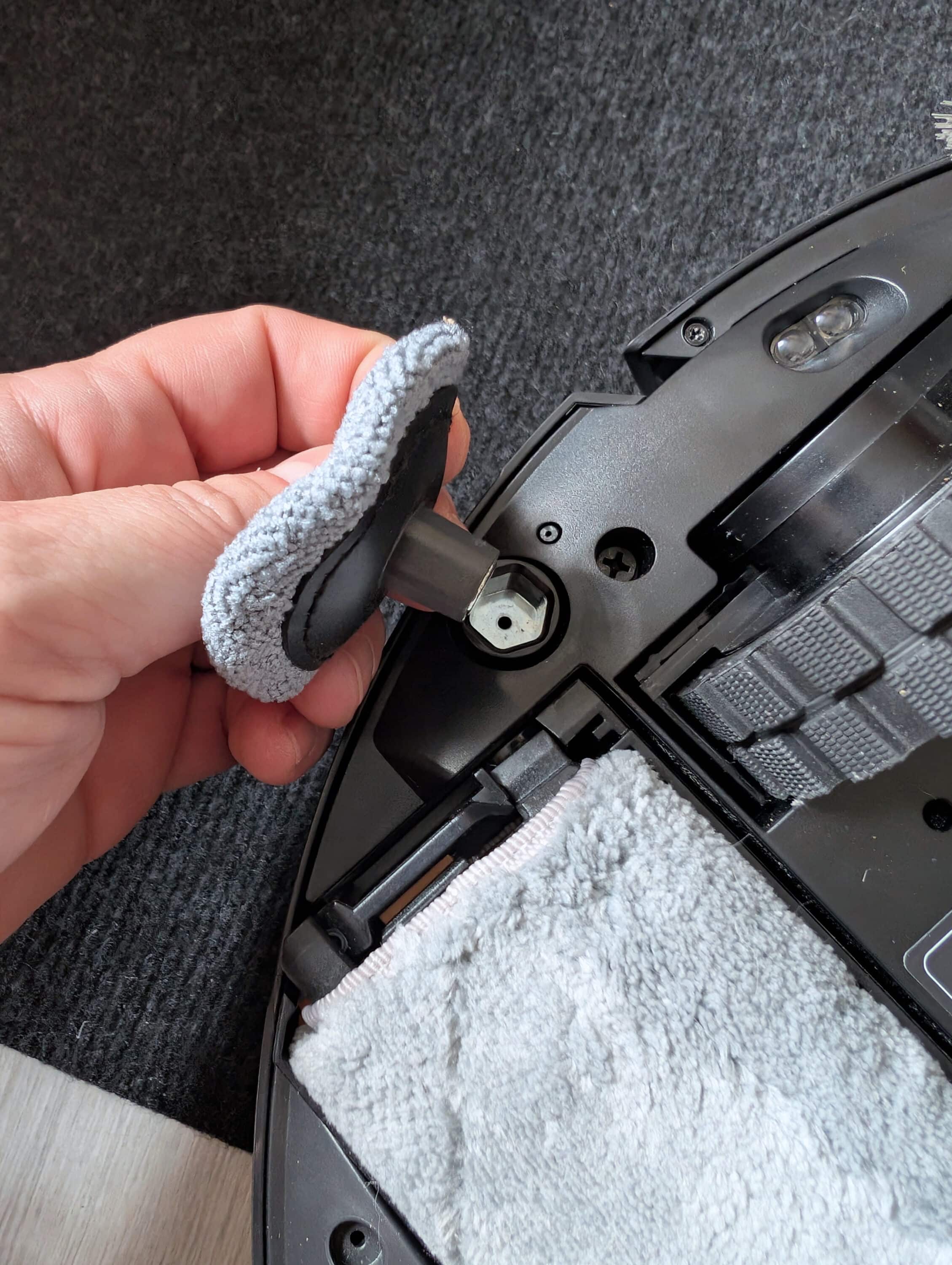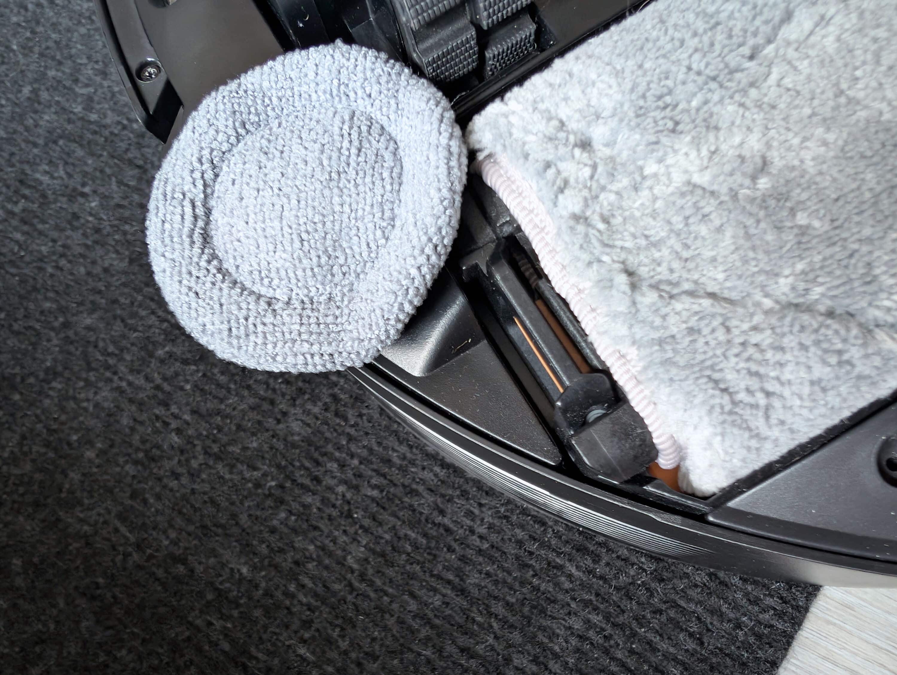 The underside is particularly interesting. The HydroSync wiping roller not only looks impressive, but is also technically well implemented. All the seals fit perfectly and the mechanism appears robust and well thought out. Although the additional mini mop is recognizably based on the Roborock model, it is also neatly finished and makes a stable impression.