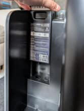 However, the design also has disadvantages: The narrow, tall tanks are impractical when filling, as you have to stand at an angle under the tap and take up a lot of space. The open design also means that dust collects in the corners of the station, which is difficult to remove. A more closed design would be desirable here.