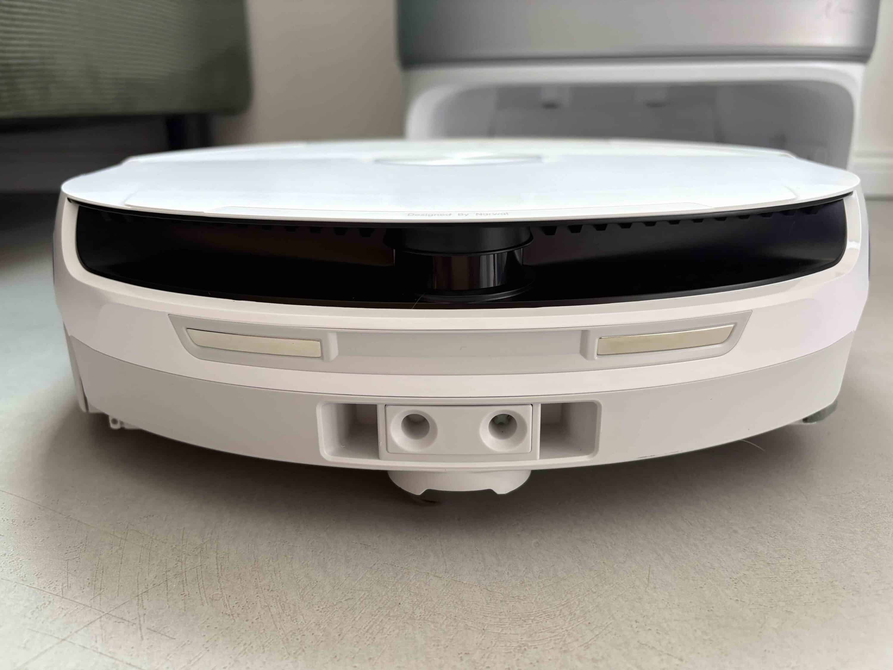 We’ll find out later how the absence of the classic tower affects navigation. In any case, the lack of a tower means that the Narwhal remains pleasingly flat with a height of 95 mm. The replacement for the LiDAR tower – the obstacle detection unit – is located at the front of the Narwhal Flow.