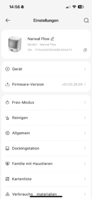 Not much has changed in the Narwal app with the release of the Narwal Flow. It scores with a very good overview, but its look and feel cannot keep up with the software solutions of the major brands Roborock and Dreame. Setting up the robot hoover is quick and uncomplicated. Once you have created a Narwal user account, you simply add the Flow as a new device. The robot is then transferred to your network, which is the basis for remote control of the smart household helper.