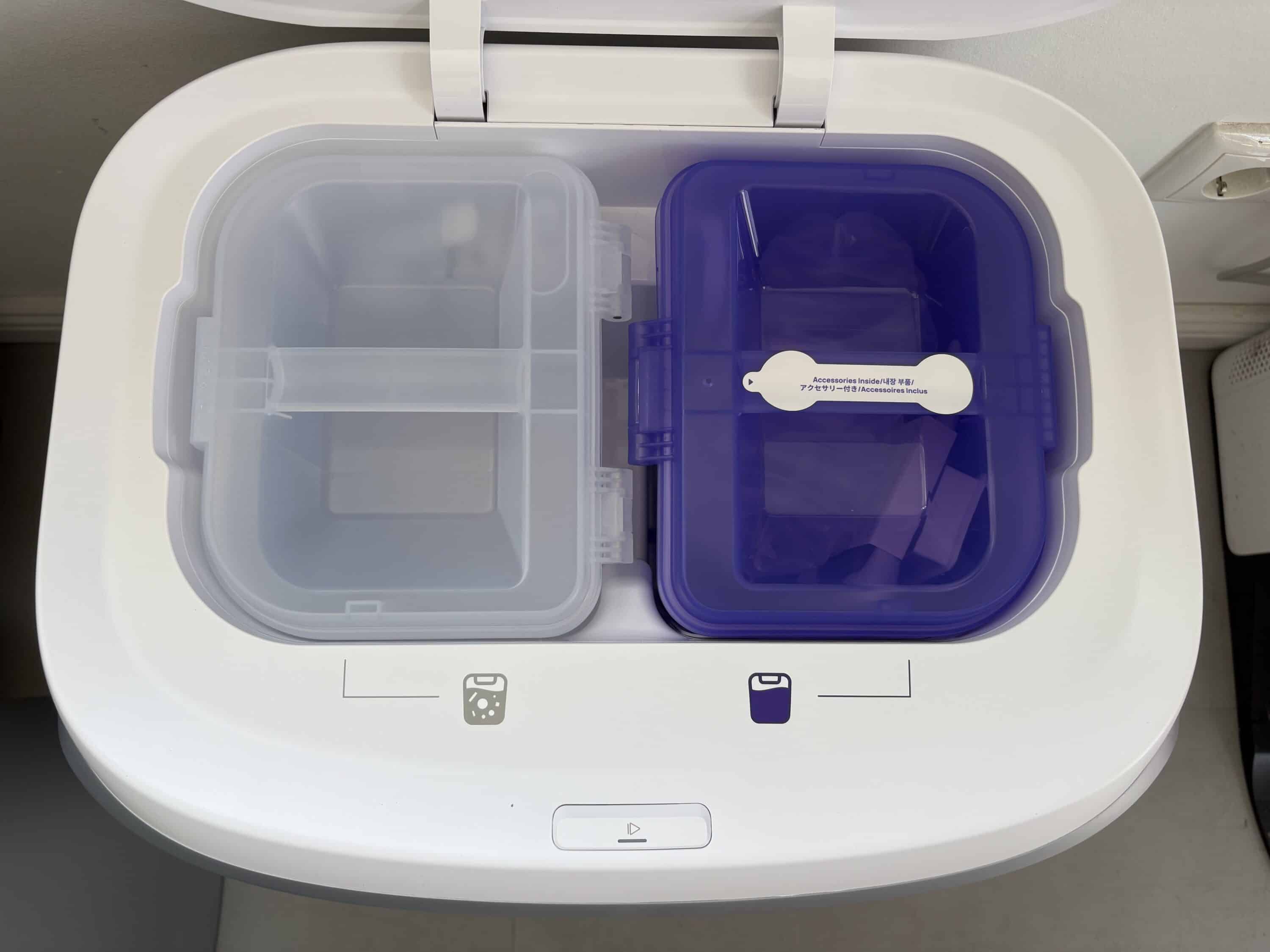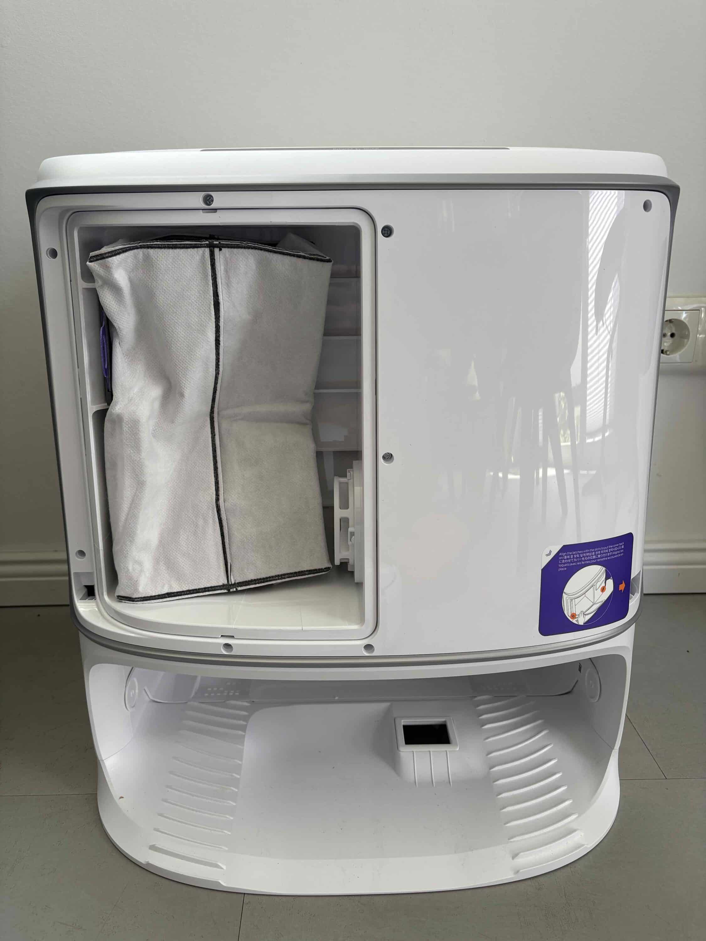 Apart from this, the station scores points with its sophisticated self-cleaning system, which also relies on AI. The hot water wash works with 80°C hot water. Bacteria and unpleasant odors don’t stand a chance here. Depending on the degree of soiling, the station adjusts the temperature during the hot water wash. The wash is followed by drying with 40°C hot air. The other features are also impressive.