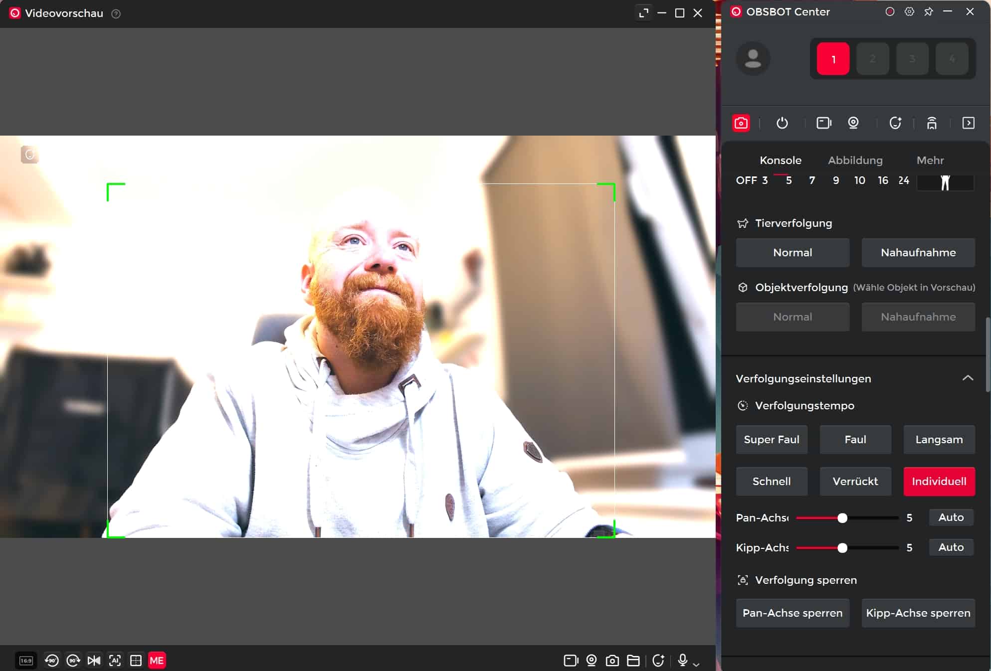 The camera can be operated either via PC/notebook or smartphone and can also be controlled via a separately available remote control. The familiar OBSBOT Center app, which is also used to operate the manufacturer’s webcams, is used on the PC/notebook.