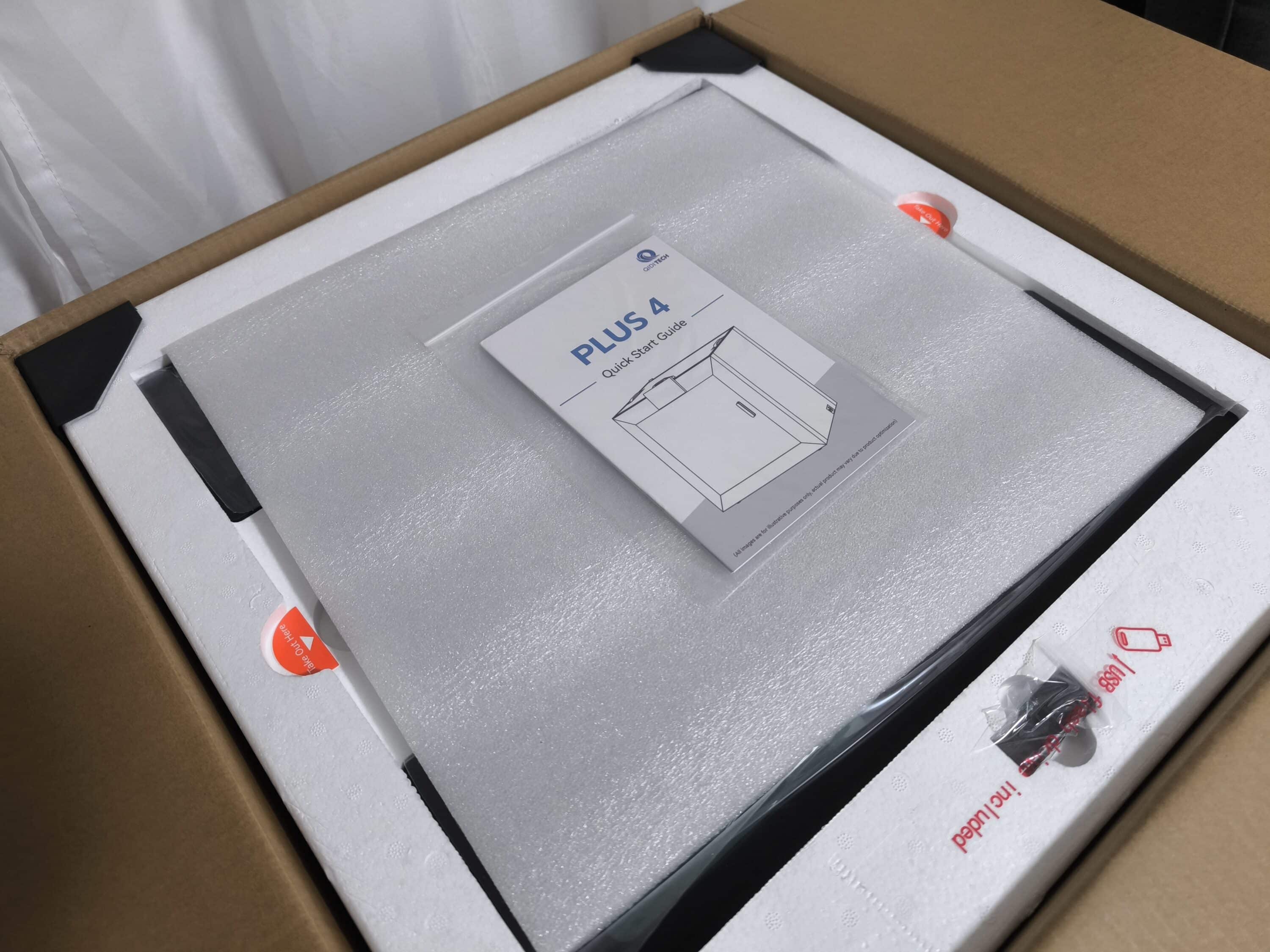 First things first: the QIDI TECH Plus4 is definitely not a lightweight and weighs in at around 27 kg. The cuboid packaging is correspondingly bulky, weighing a hefty 32 kg with accessories. For this reason, the package is best transported by two people, as QIDI TECH itself recommends in the form of a note.