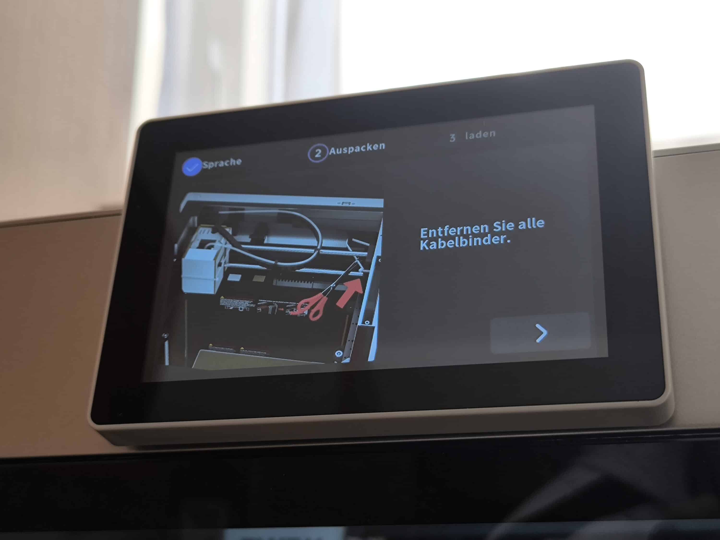 Assembling the QIDI TECH Plus4 generally doesn’t take very long and hardly requires any significant effort. Only lifting the 3D printer out of the packaging can initially lead to difficulties. In this case, it is advisable to use the two carrying handles on the top. After unpacking, the door handle is first attached to the front panel. Two screws are required for this. The display is then connected to the top front panel. All you need to do here is connect the free cable to the back of the screen and plug it into the corresponding holder on the side of the QIDI TECH Plus4. At this point, the 3D printer can already be switched on, as the screen will now guide you through the next steps once it has started up.
