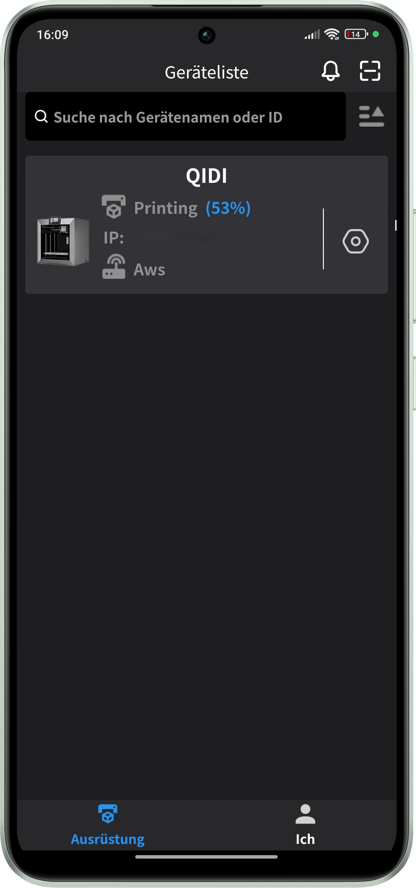 The QIDI Link app is available for both Android and iOS and is used to monitor and operate the QIDI TECH Plus4. The device must first be linked to the personal account, which can be done quickly using the QR code in the settings. The 3D printer is then available in the app as long as there is a permanent network connection.