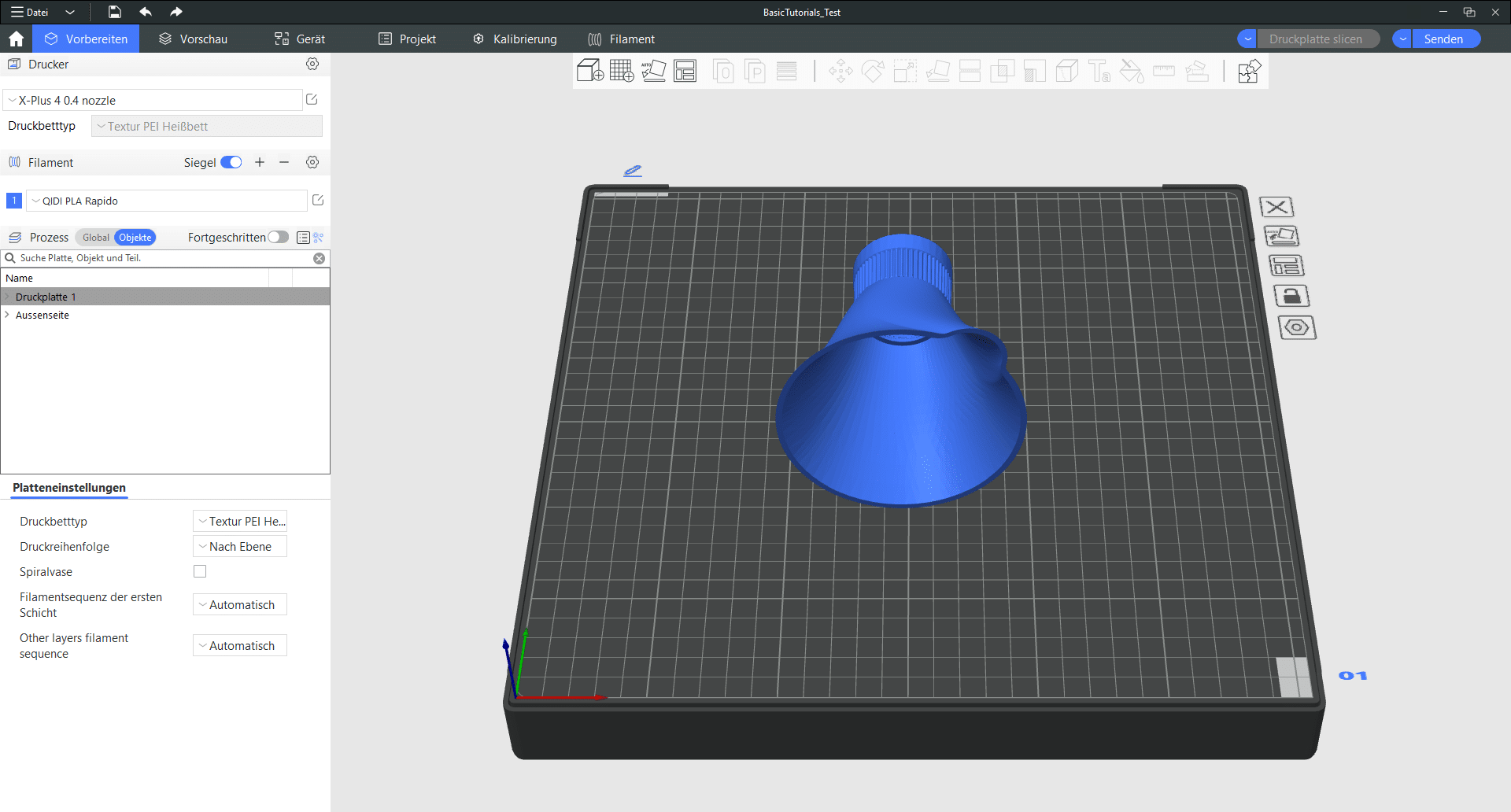 In practice or in everyday testing and after a little practice, the first test prints are already successful with respectable results. Although both the QIDI Studio software and the German language on the 3D printer itself are rather chaotic and terms are sometimes translated incorrectly, with a little thought you can get by reasonably well. In general, if you are familiar with the English language, it is better to work this way in both cases.