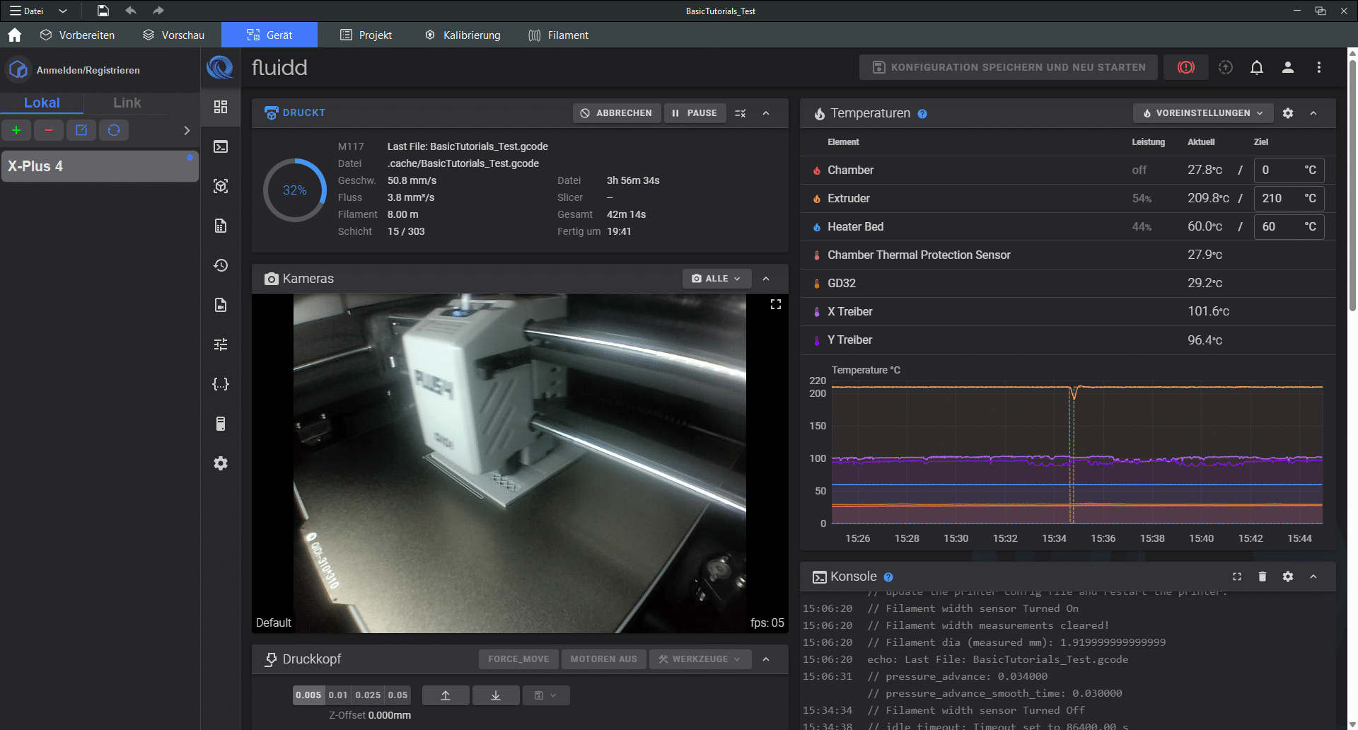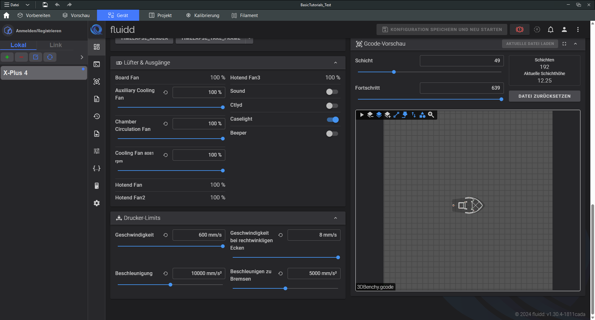 As far as printing times are concerned, these have remained basically unchanged at 600 mm/s compared to the previous X-Plus 3 model. Accordingly, our print test with 3DBenchy also comes to 16 minutes. However, the significantly larger build space of the new model and the ability to monitor the printing process live at any time via the software or smartphone is an advantage. On the other hand, the overall performance of the UI is rather sluggish, which makes controlling the functions somewhat slower than expected.