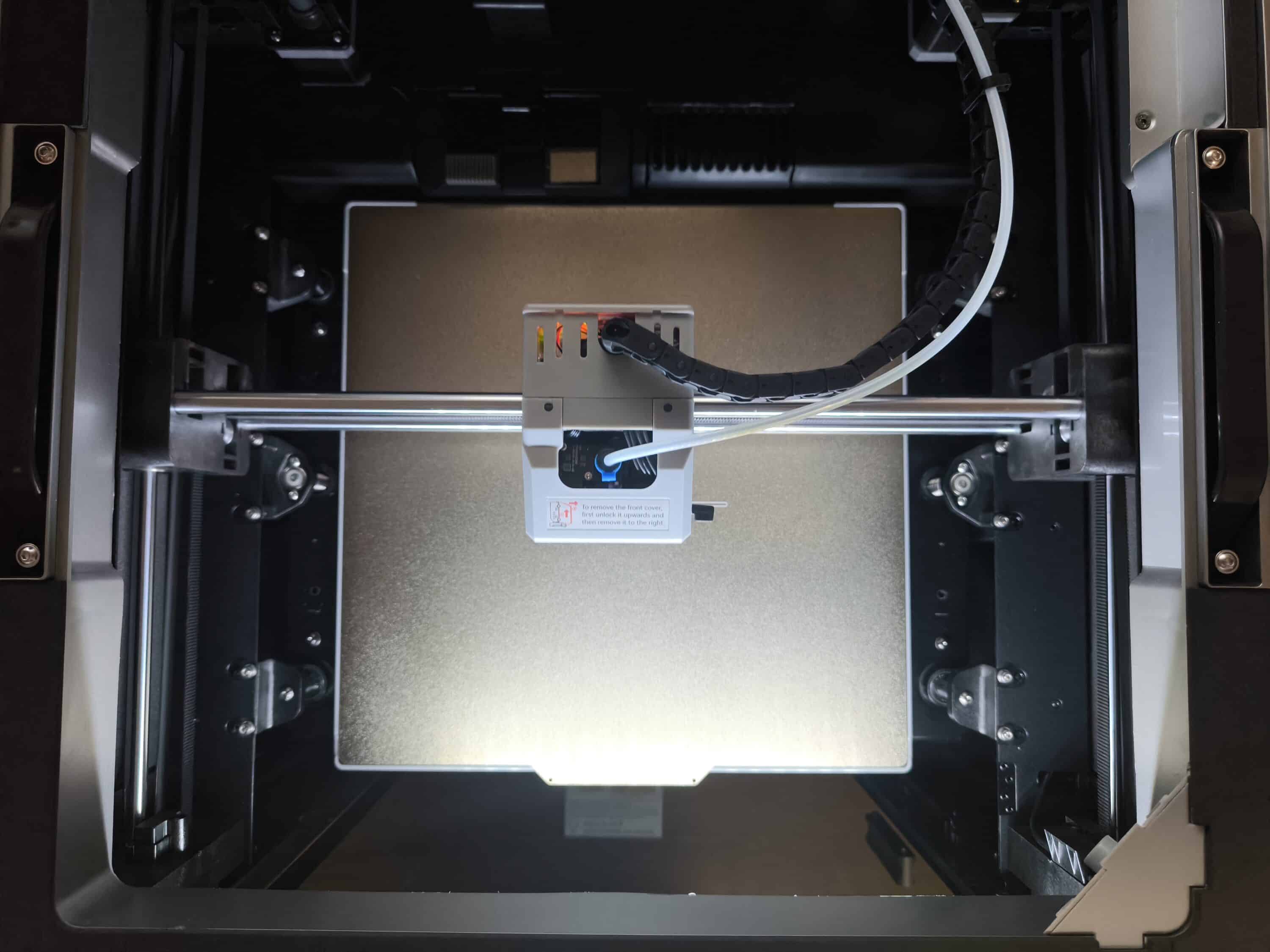 In terms of workmanship, QIDI has obviously gone the extra mile with this model and rectified some of the weaknesses from our last review of the QIDI TECH X-Plus 3(our test). In our test model, the door no longer wobbles and opens and closes perfectly. It is possible to look into the closed and heated printing chamber from the outside, both from above and from the front, although the transparent plastic glass tends to reflect. All in all, the workmanship is clean and therefore appropriate for the price range. Minor fraying under the print bed is still present, but the overall impression here is clearly positive.