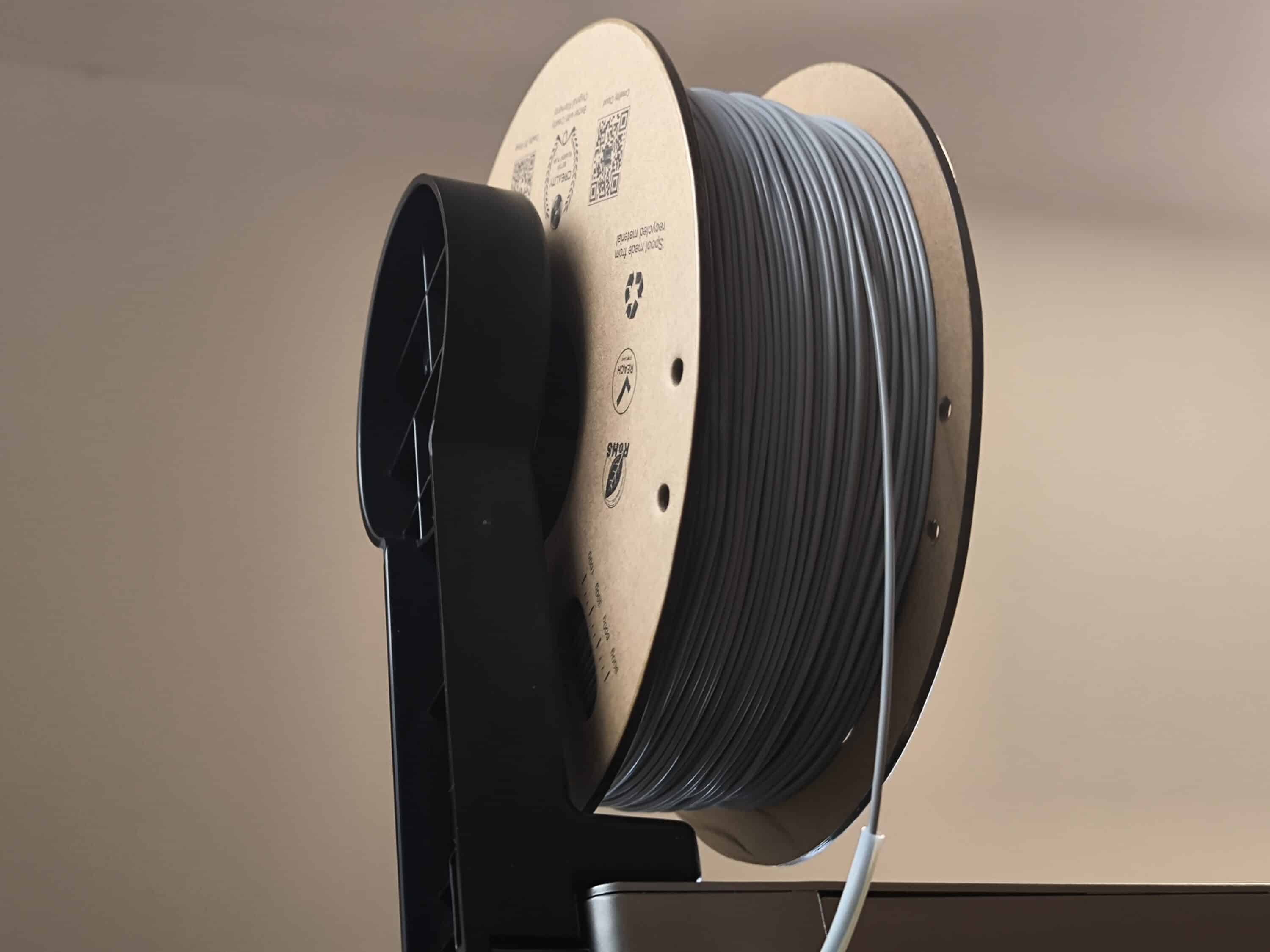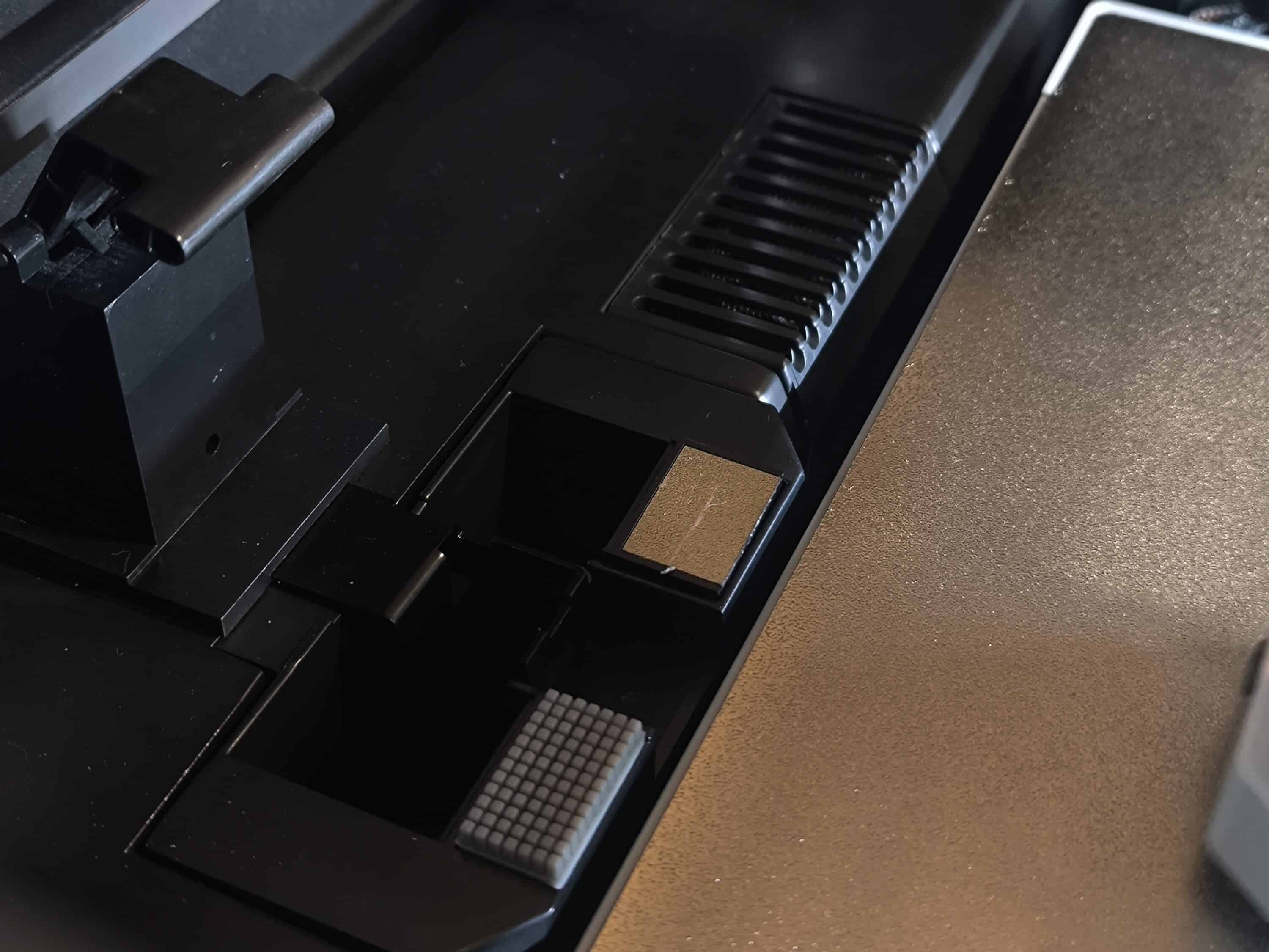 This includes removing the protective film and cable ties, loosening the transport lock on the pressure plate and mounting the filament holder, which is located on the back of the QIDI TECH Plus4. It is also worth mentioning the opening of the activated carbon filter, which is somewhat hidden in the housing with its own compartment. This is definitely justified, as it is intended to reduce emissions in the printing environment. Finally, quickly insert the short filament tube into a small opening on the left-hand side panel and you’re ready to go. Provided you have enough PLA to hand for the first test prints.