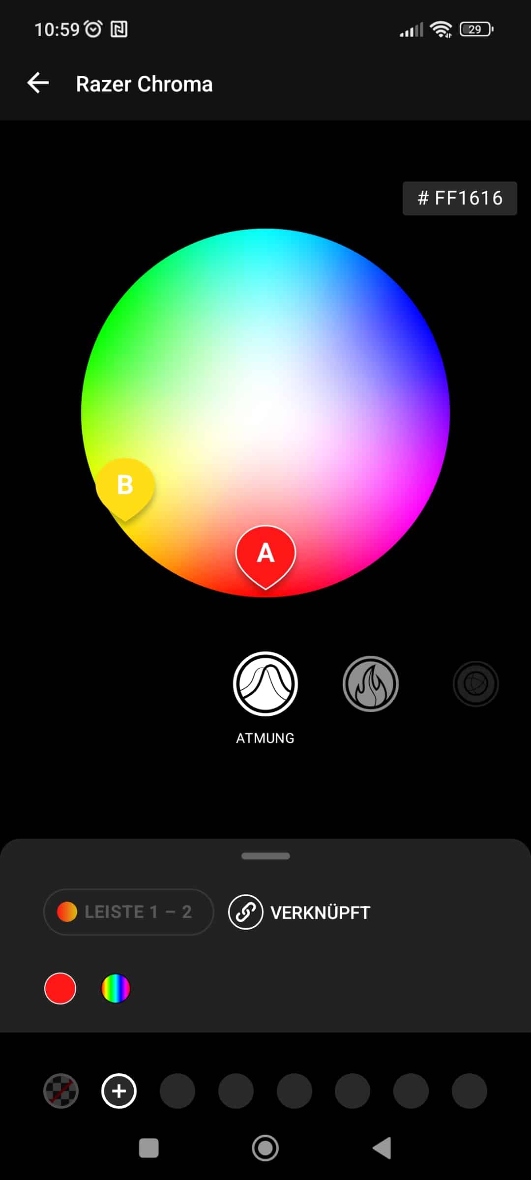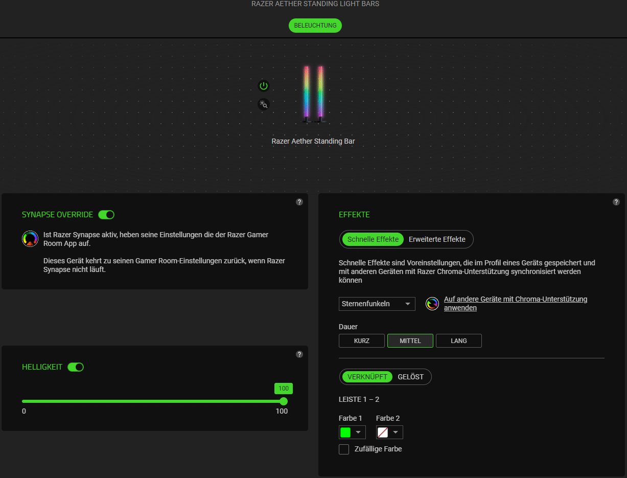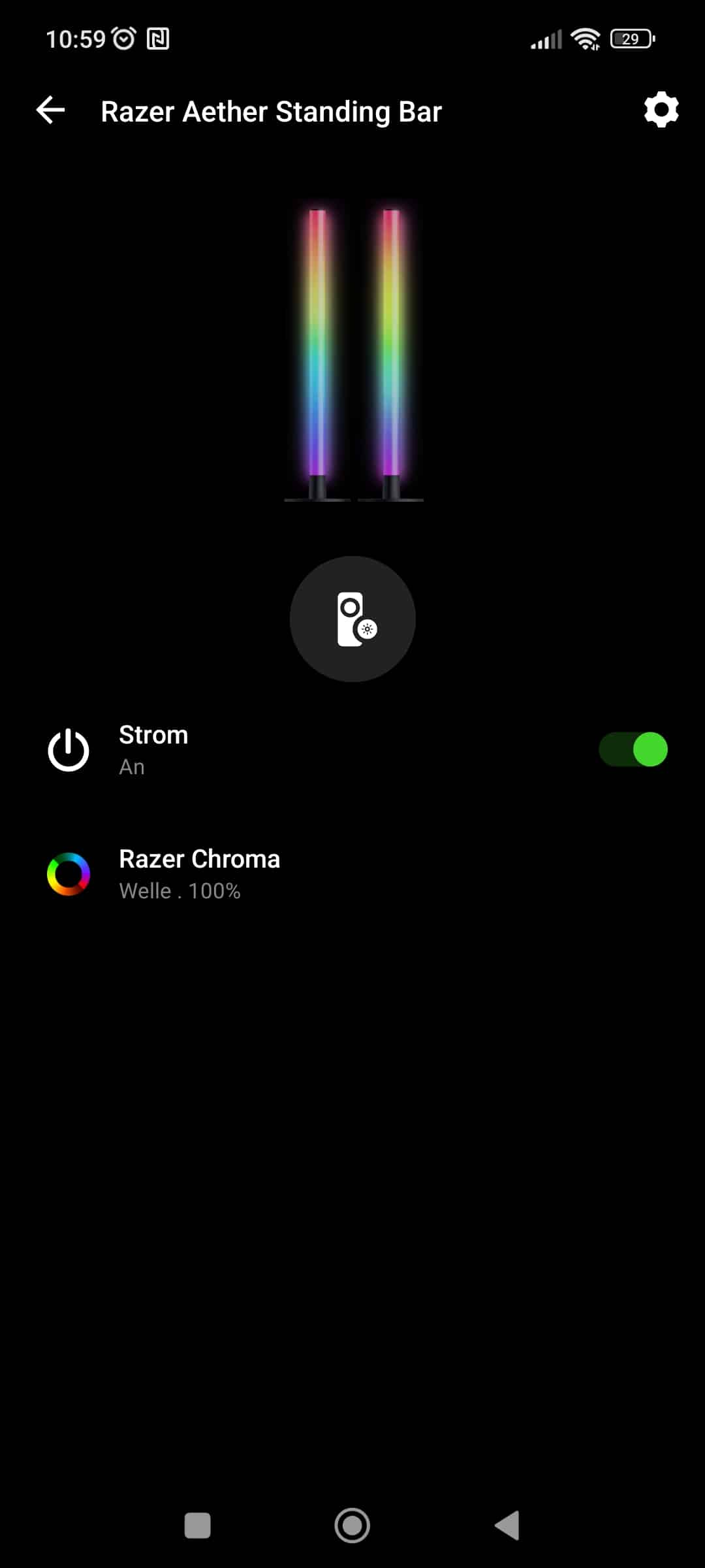 You can now use the installed app or, for all Razer fans, the Synapse software for control. All you need to do is to be logged in with the same account on both devices. The Razer Aether Standing Light Bars can then also be controlled via the PC. Free color settings are then also possible via Chroma.