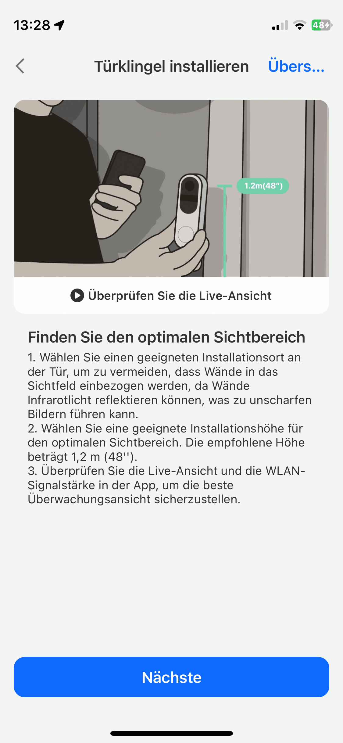 At night, however, the Reolink provides excellent IR night vision. However, there is no colored night vision. An LED unit like the TP-Link Tapo D230S1 (review, € 84.90 *) would perhaps have been a good idea here. However, the biggest improvement over the Reolink Video Doorbell is the great viewing angle. If you mount the video doorbell at the recommended height of 1.2 m, you can see both the head and feet of people of normal height.
