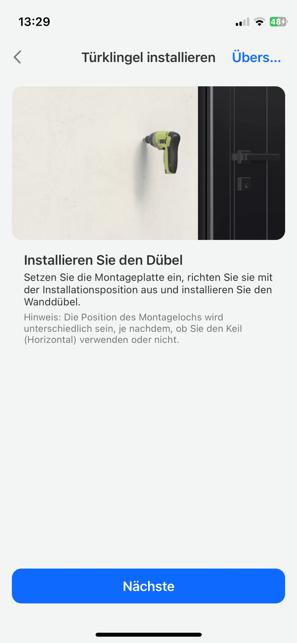 Once you have found the right place, you can use the practical drilling template from Reolink, which the manufacturer includes with the smart video doorbell. Now drill two holes according to the template and use the plugs and screws provided to attach the doorbell mount. A mounting height of around 1.2 m is ideal. If you want to change the viewing angle of the camera, you can use the practical washer that Reolink includes in the scope of delivery.