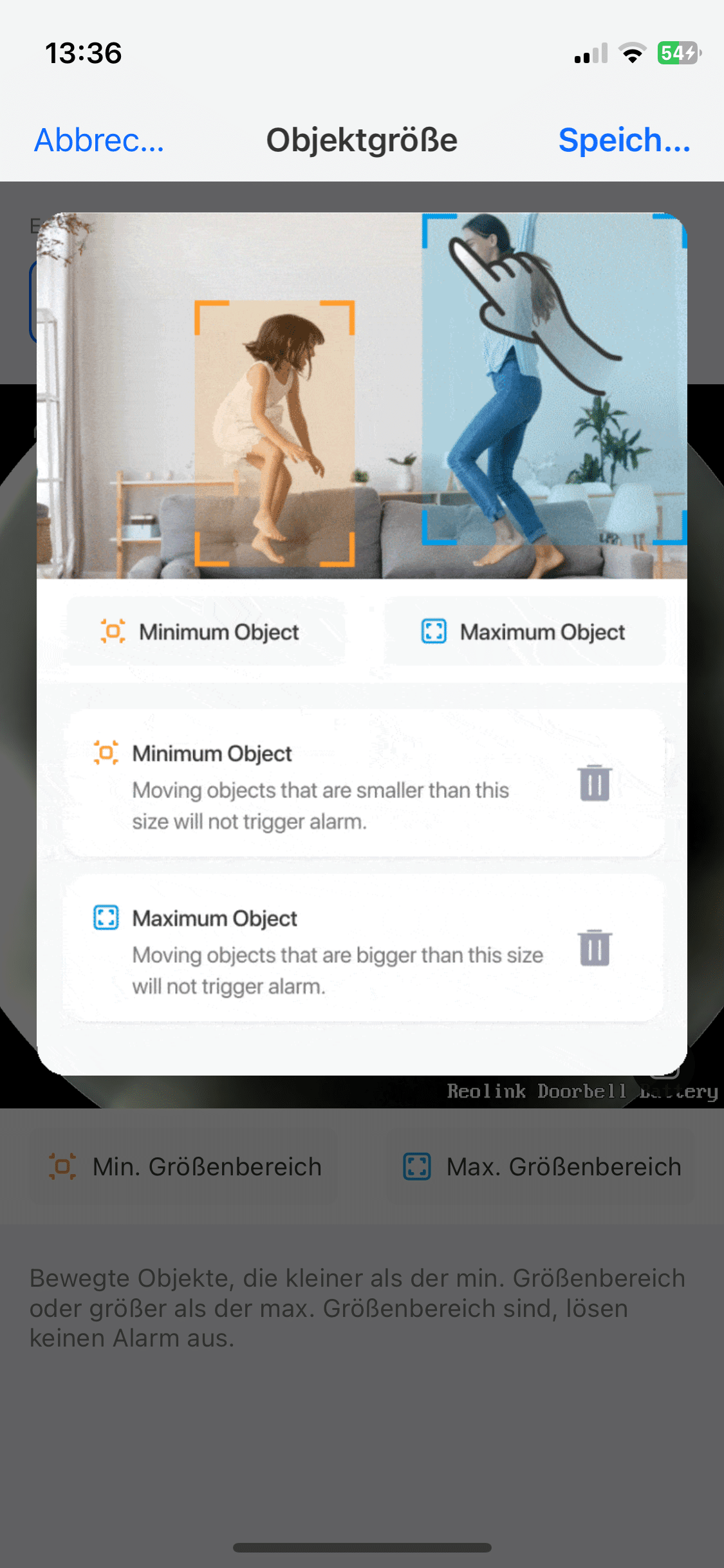 Of course, Reolink also offers motion detection. This works very cleverly in the video doorbell and can distinguish between different sources of movement. Detailed adjustments can be made in the app. For example, you can specify which size objects should trigger the detection. You can also specify which movements should trigger a notification. The Reolink not only detects the movement of people and animals.