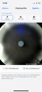 In the Reolink app, you can choose between two different video modes (1024p or 2048p). If you have a sufficiently strong internet connection, you should opt for the higher resolution. After all, the lower resolution has no other advantages apart from a reduced data throughput. Both recordings run at 15 frames per second.