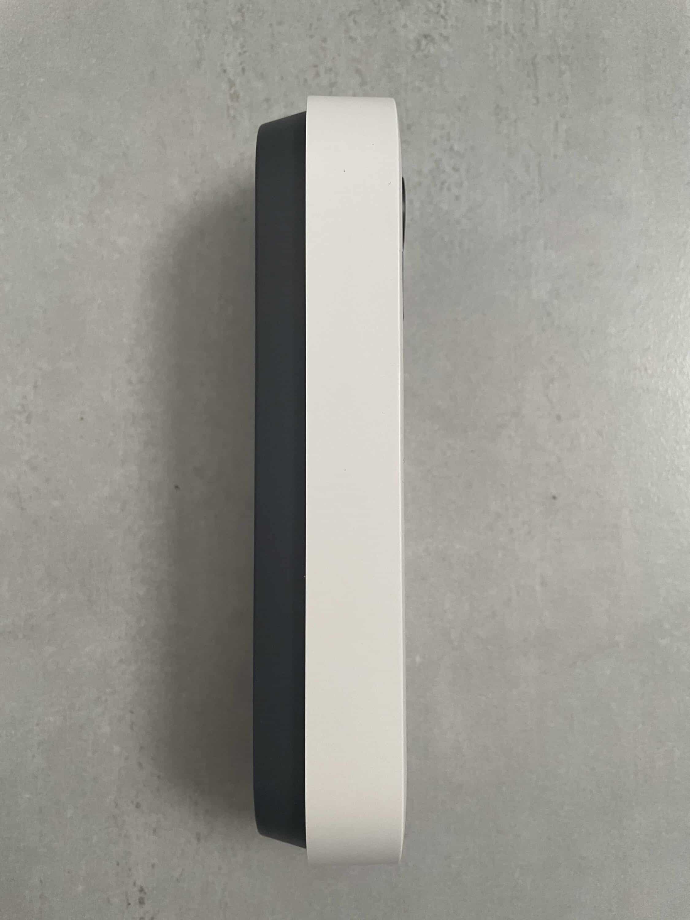 However, the built-in battery is not only noticeable in the overall height. The Doorbell Battery is also significantly heavier than the Reolink doorbell without battery. On the other hand, Reolink remains true to its design. The latest model also features attractive rounded corners at the top and bottom. The layout also corresponds to that of its predecessor. The camera unit is located in the upper half and the illuminated bell button in the lower half.