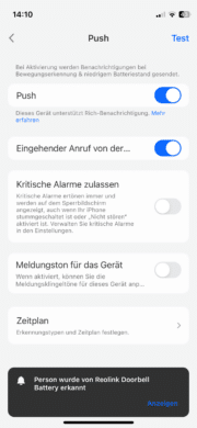 Before you finally hang the video doorbell on your wall, you first need to take out your smartphone and download the appropriate app from Reolink. This will guide you step by step through the setup process. After a few minutes, the camera is ready for use and you can finally place it in the wall mount. The app itself already impressed us with the Video Doorbell. This is not only due to its clear design. I also really like the numerous setting options.