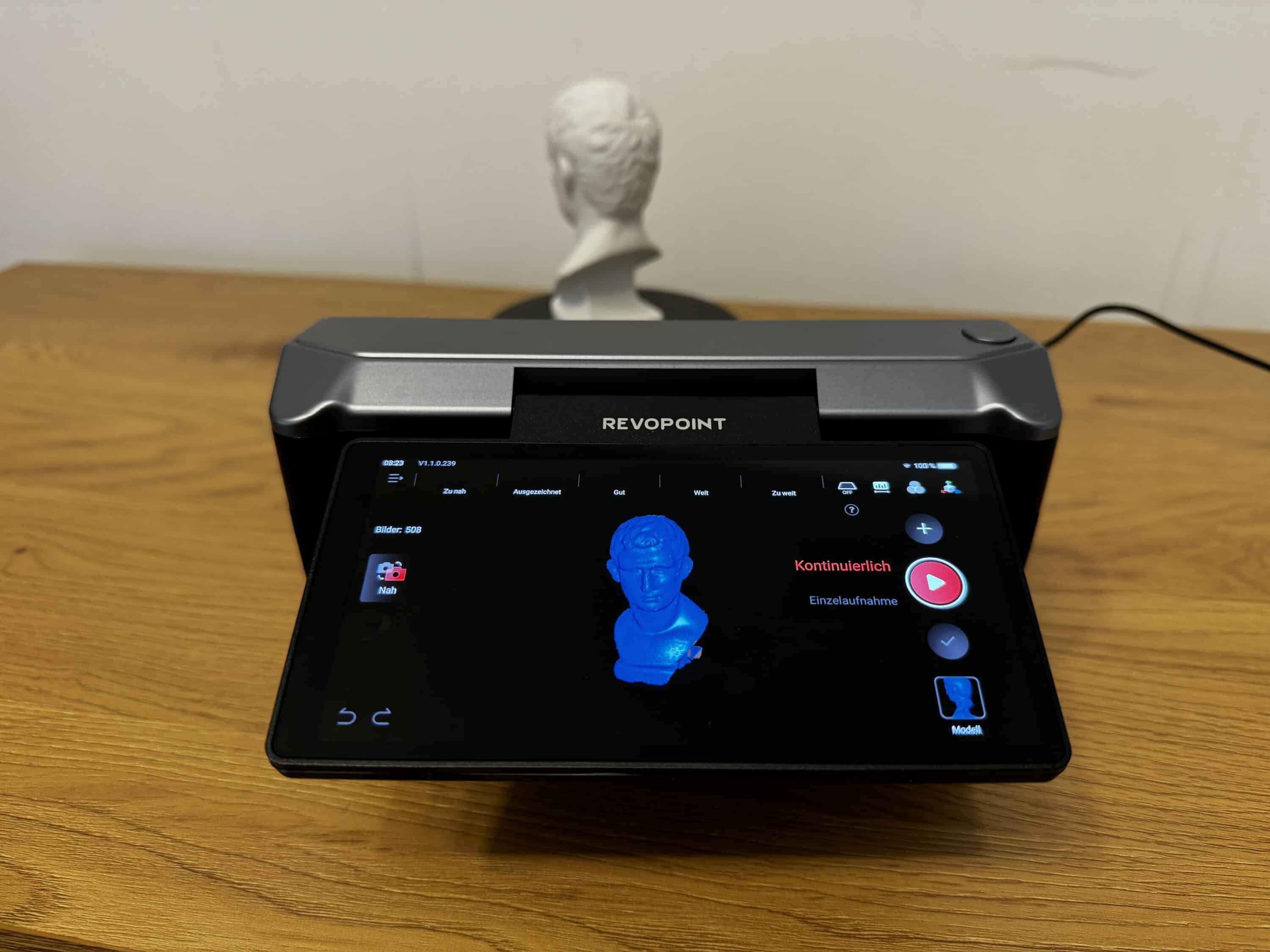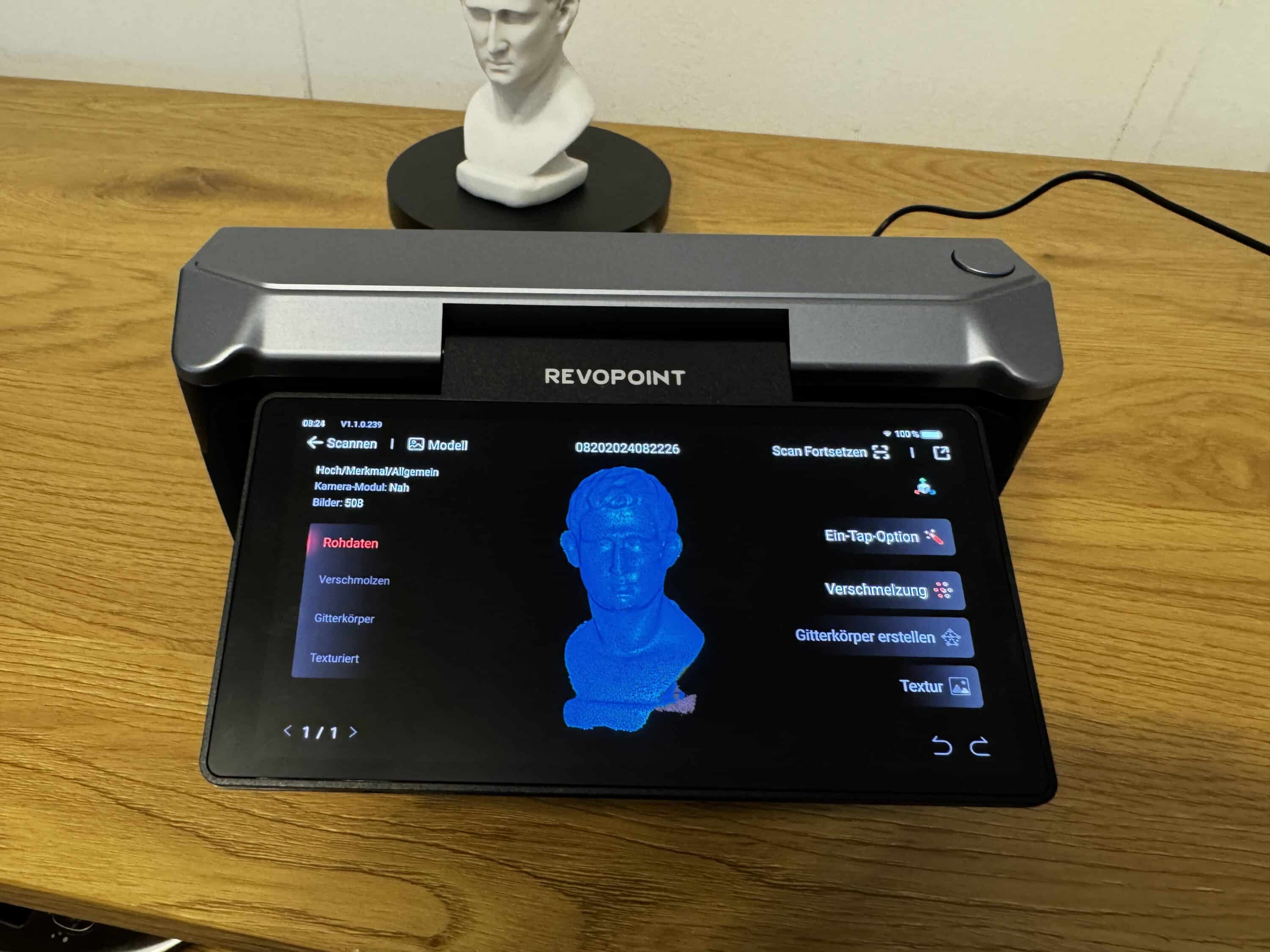 As recommended by the manufacturer, I first scanned the enclosed bust, which was placed on the turntable for this purpose. This worked wonderfully in a very short time and – at least at first glance – very precisely.
