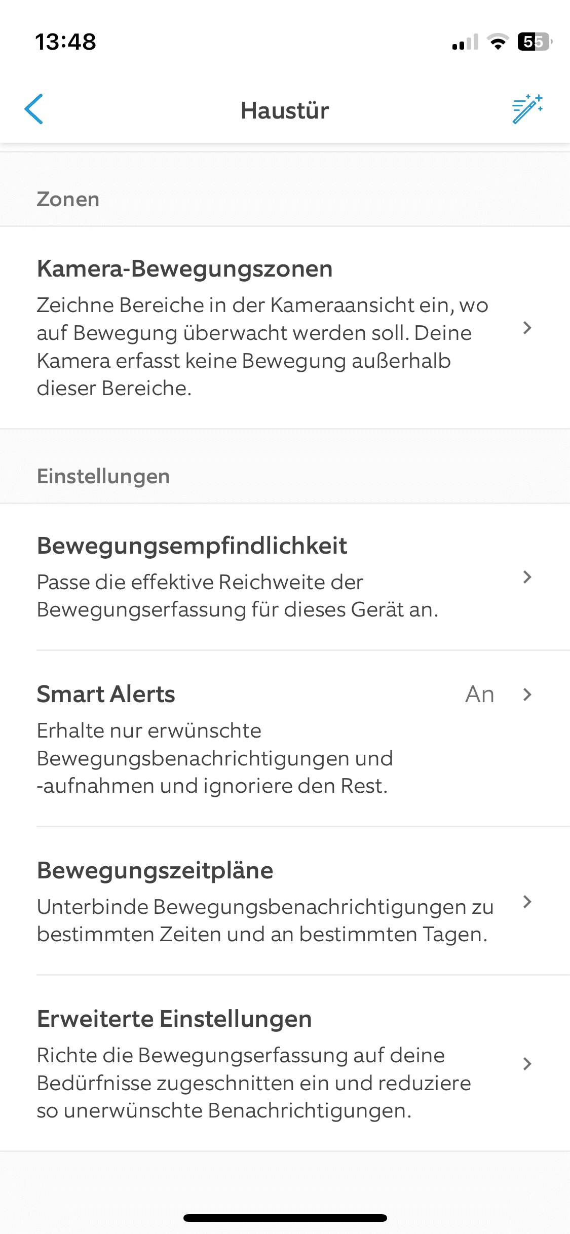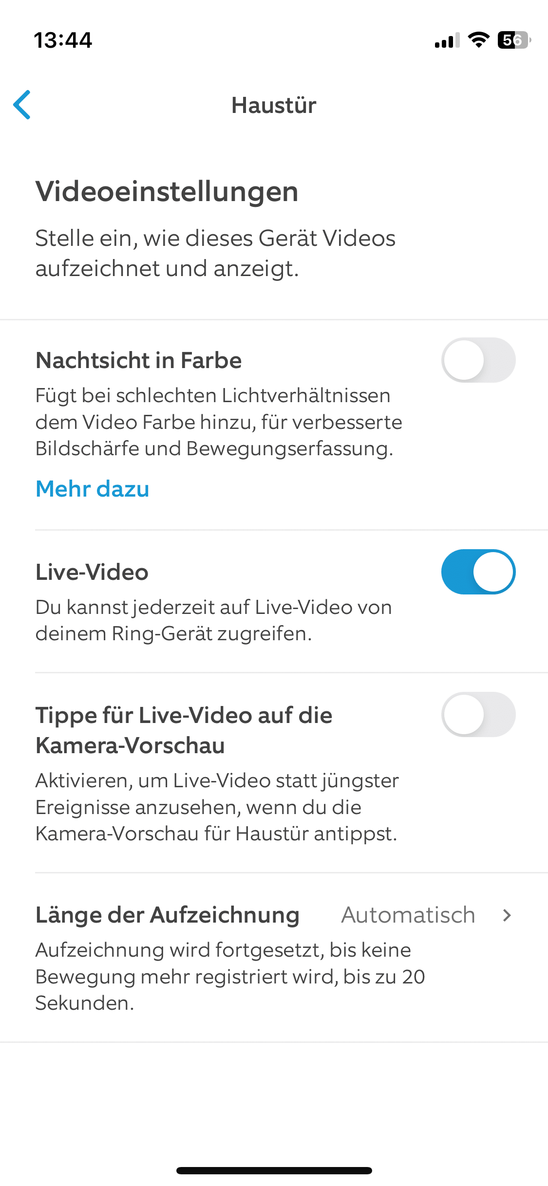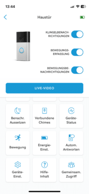 The Ring app is available for monitoring camera recordings and advanced settings. Once again, it scores points with its clear design. You can always find the right menu item straight away. Many settings can be adjusted. For example, you can adjust the sensitivity of the motion detection. This is practical for all those who live on busy roads, for example.