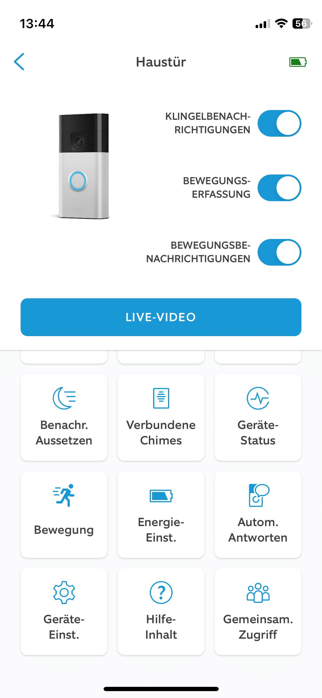 Ring Battery Doorbell test: Ring App