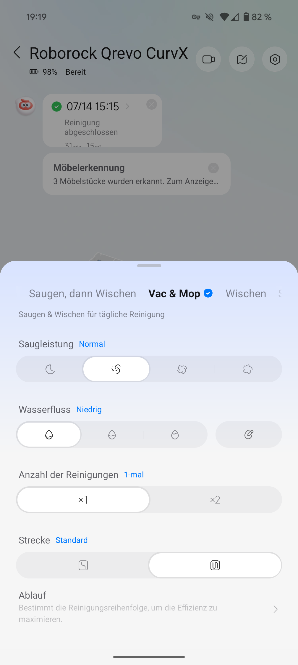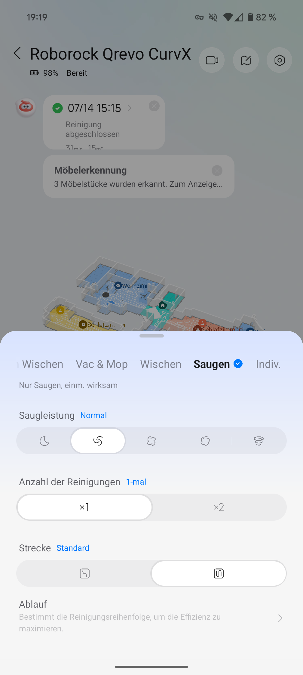 Cleaning modes and performance of the Roborock Qrevo CurvX: Versatile and powerful in the test