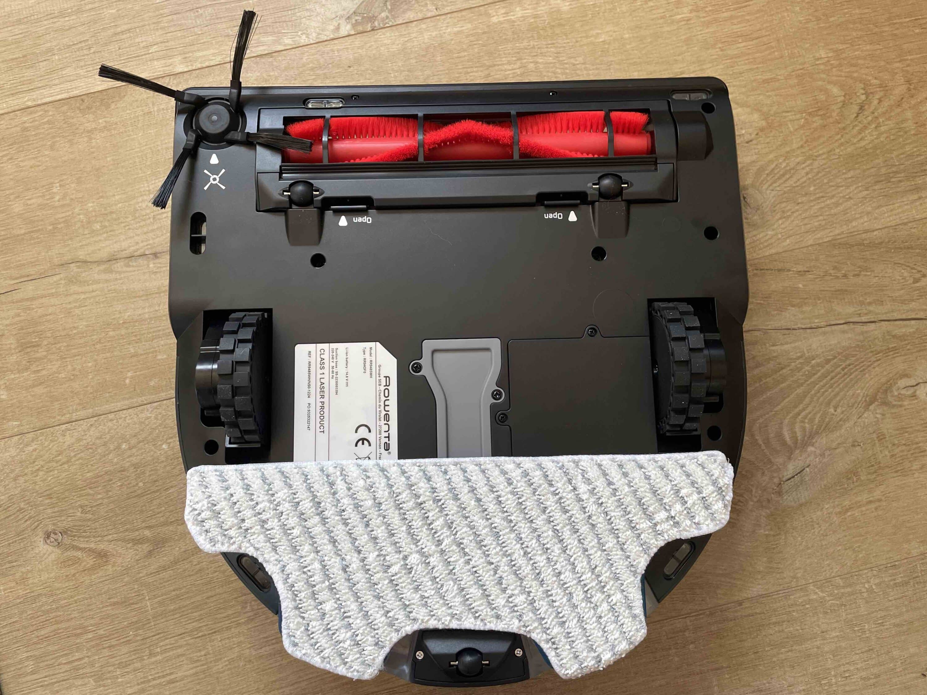 This is where the mop, two large and well-profiled wheels and the suspension for the main brush are located. The Rowenta X-plorer Series 220+ has a good build quality and a matt black housing made of high-quality plastic.