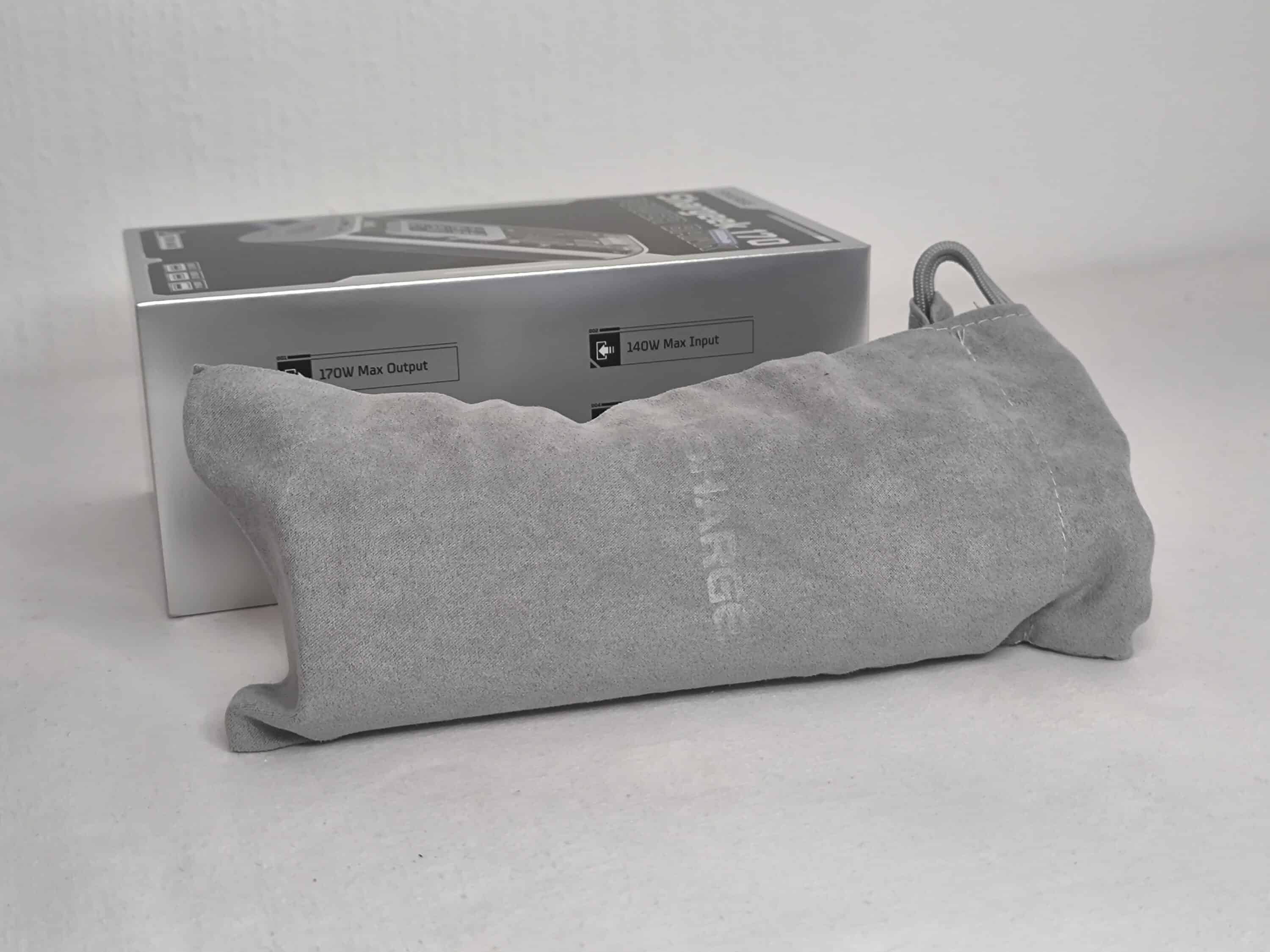 As is usual with power banks, the scope of delivery of the Shargeek 170 is limited to the essentials. In addition to the Shargeek 170 itself, a USB-C cable and a small instruction manual are included. The included fabric bag also makes the powerbank suitable for traveling and protects it from scratches during transport.