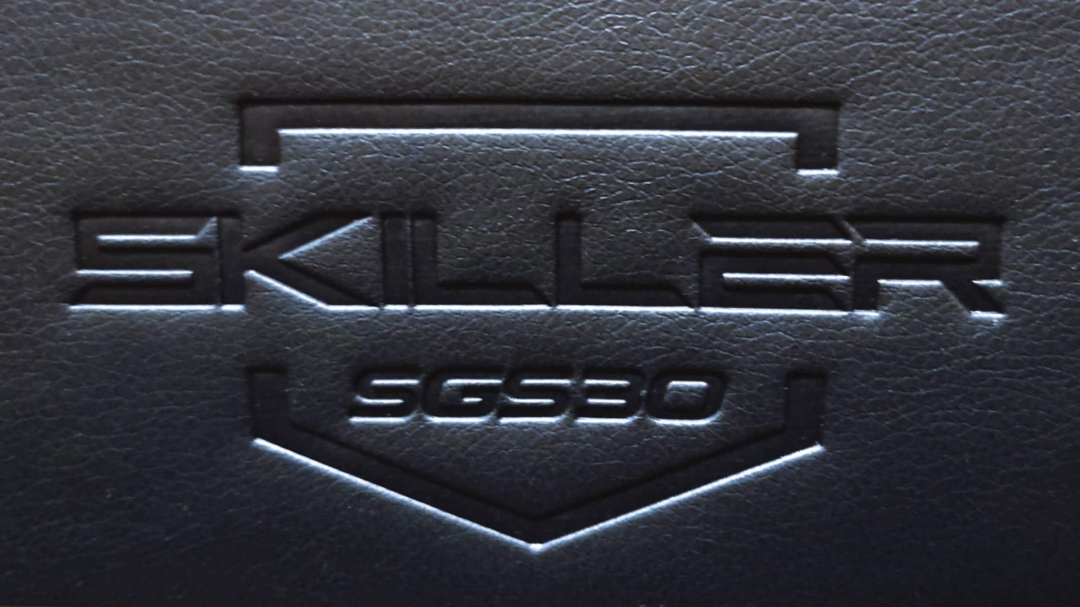 Here we can also directly link to design details. The model sets an interesting contrast to the black basic tone with eye-catching elaborate emblems and decorative stitching in red, white, beige or even bright pink. The embroideries are flawless and of a high quality and do not show any defects. There are a total of 3 embroidered applications on the SGS30 itself: On the back, the logo and the manufacturer’s name have been combined in one lettering – at the height of the neck. The manufacturer’s logo is emblazoned on the front of the back, the shark fin at head height, as well as the Sharkoon lettering on the left shoulder cup. In addition, the model name has been embossed into the PU leather in the upper half, which gives the gaming chair an exclusive touch. Further embroidery can be found on the two cushions. The lumbar support is decorated with the name and the corresponding logo of the model series, and the shark fin can be found again on the head cushion. Geometrically converging decorative stitching emphasizes the individual accents and completes the design.