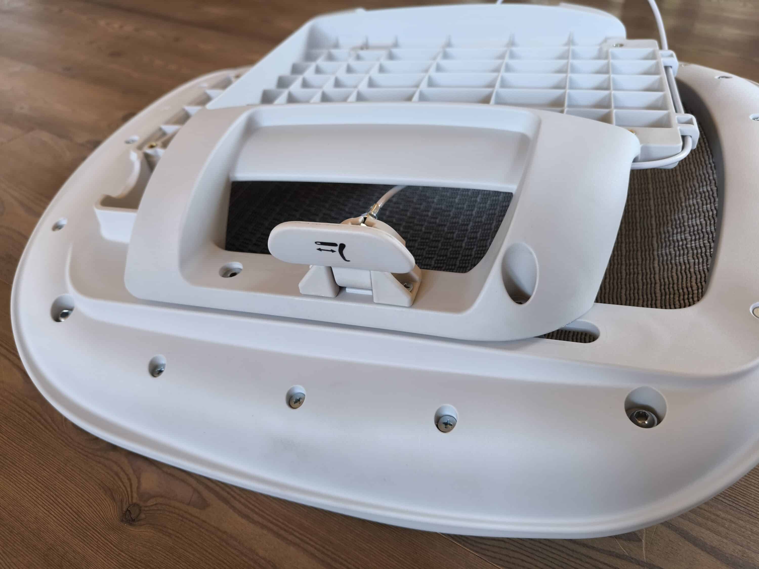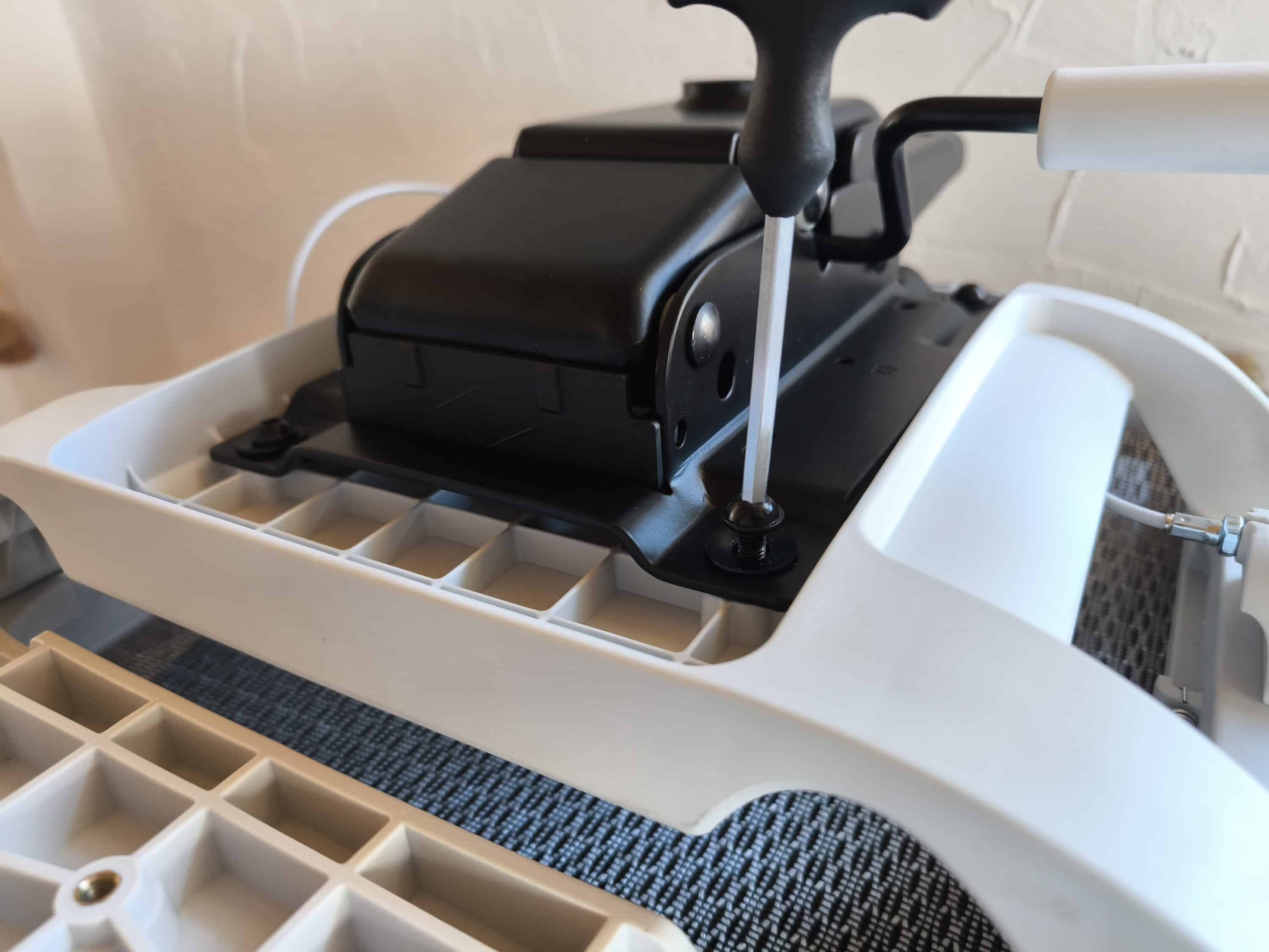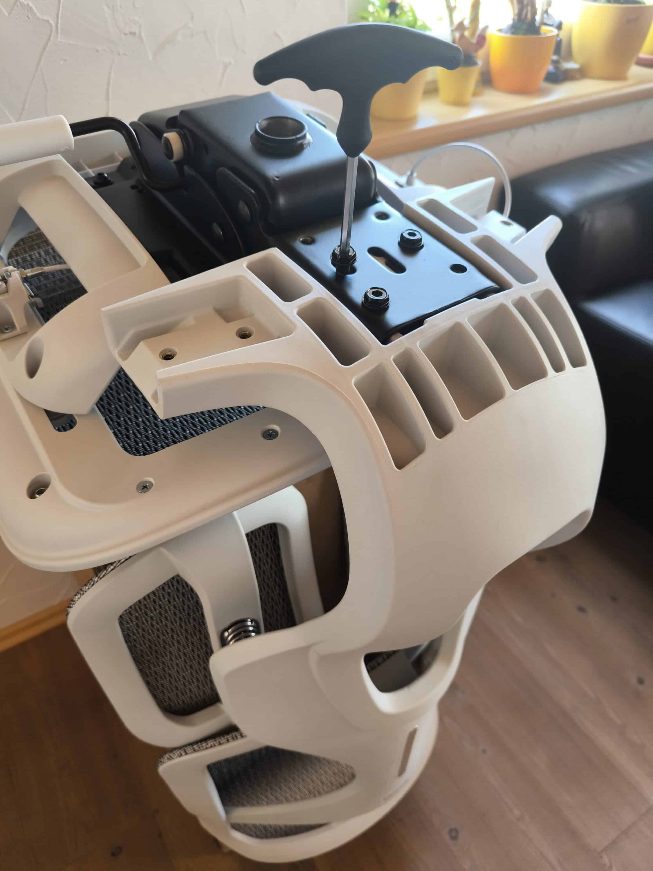Installing the backrest on the underside of the seat cushion requires a little dexterity. SIHOO suggests using the packaging cardboard as a base for assembly, which seems sensible. In the test, however, this proved to be a rather wobbly affair, which is why it is better to use a harder surface such as a table or a low cupboard.