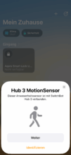 What the smart home expert also installs here is a motion sensor. If the Hub 3 hangs on the wall, it has a range of four meters. A motion detector is of course particularly interesting in combination with smart lighting. But you can of course also create other automations here.