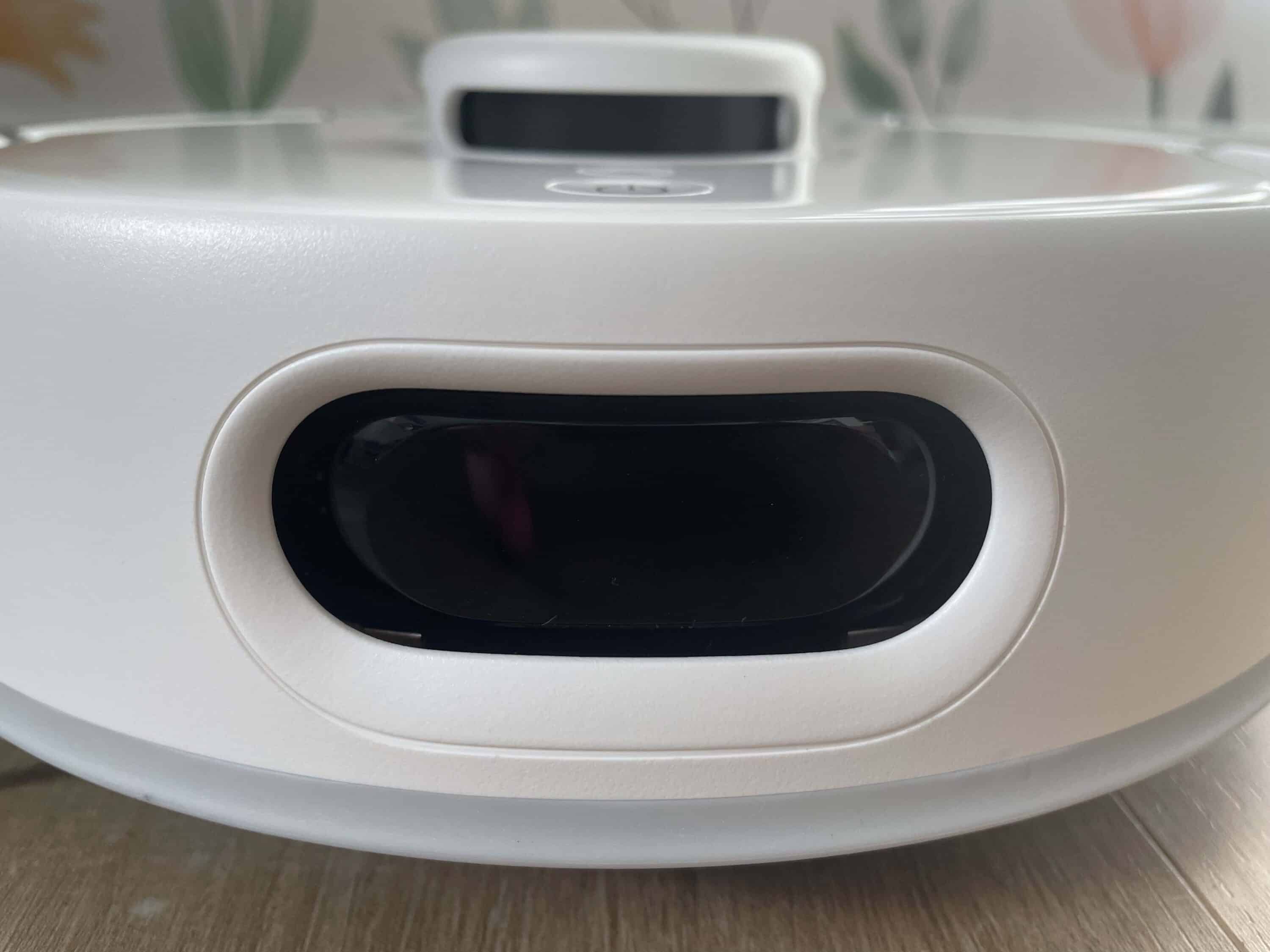The SwitchBot S10 (review, € 499.99 *), on the other hand, measures a good 10 cm more in diameter. In the middle of the top is a small turret containing the LiDAR technology. Above it are two buttons that can be used to switch the robot hoover on and off and send it home. At the front, SwitchBot not only places a bumper that is designed to dampen collisions and thus prevent damage to the robot vacuum and furniture. It also features obstacle detection technology.