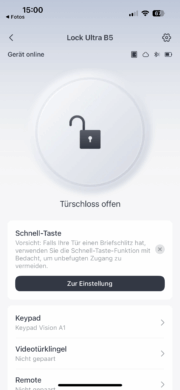 We have already emphasized the good overview and smooth performance of the app for other SwitchBot products. As the Lock Ultra is also the key control center, we were pleased to see that the app also impresses with the latest generation of the smart door lock. The SwitchBot app not only allows you to see at a glance whether your door is currently open or locked.