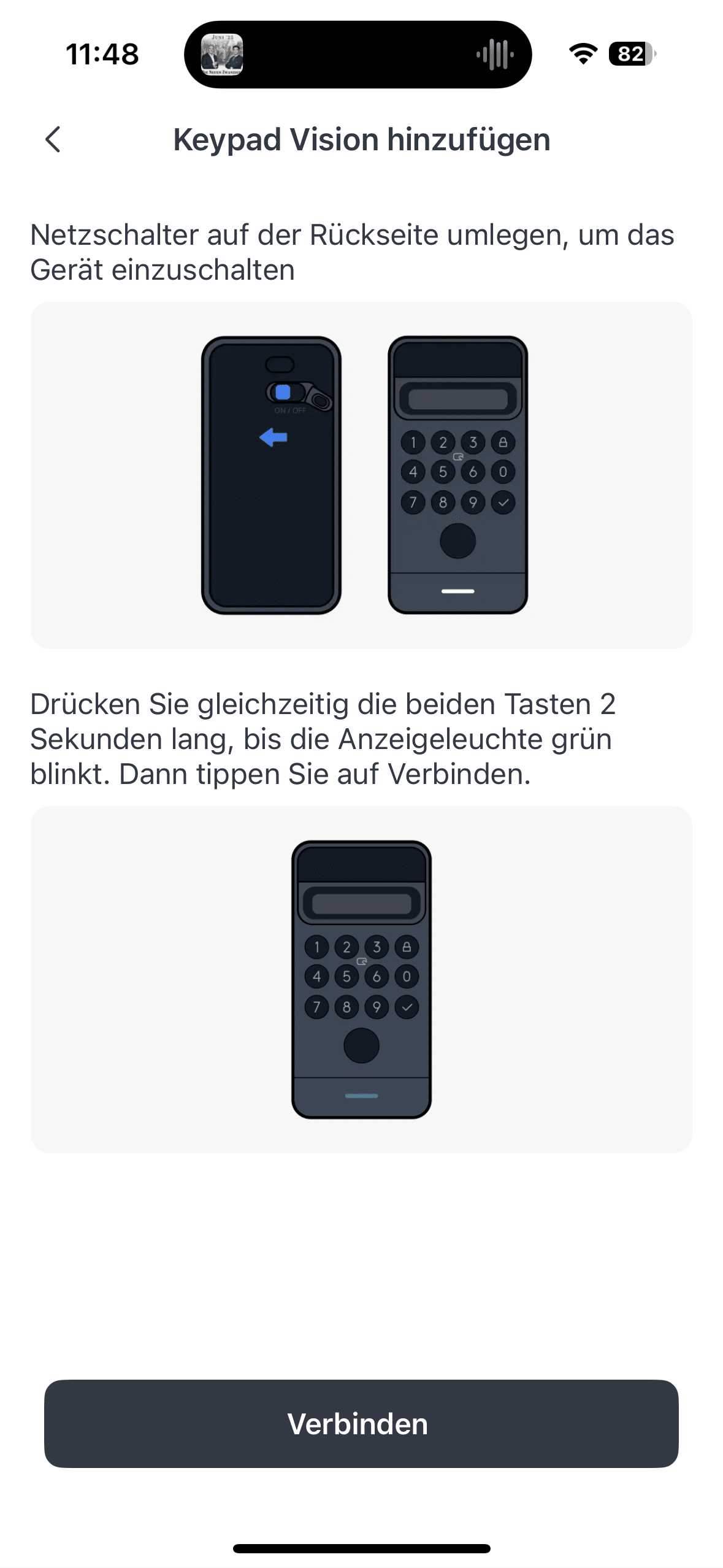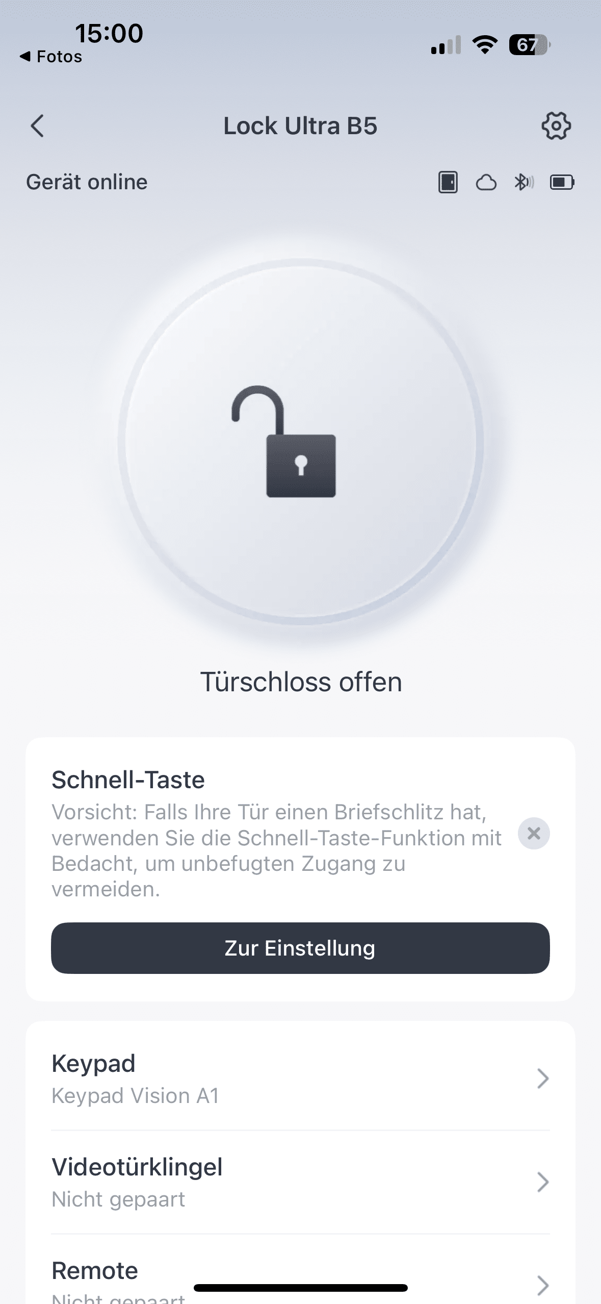 Alternatively, you can use an NFC card or your fingerprint to unlock the device. At the bottom is a button that you can assign automations to. For example, a ringtone can be played at the touch of a button, which even turns the keypad into a kind of doorbell.