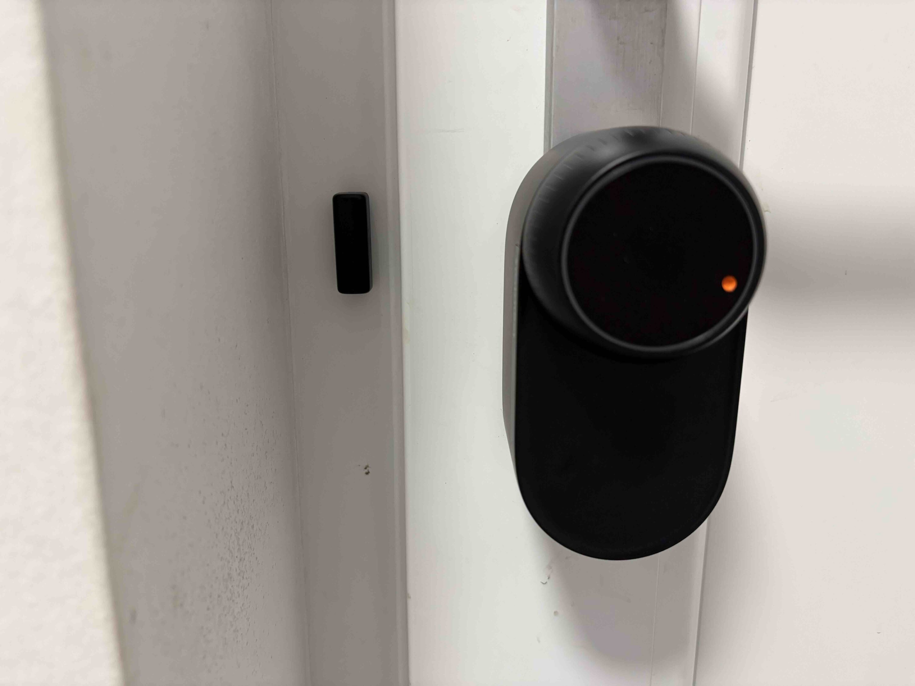 So that the lock knows whether the door is open or closed, you need to stick the appropriate magnet to the door frame. Now insert the battery and the lock can be set up. Installing the Keypad Vision is even easier. Here you can choose between drilling or gluing.