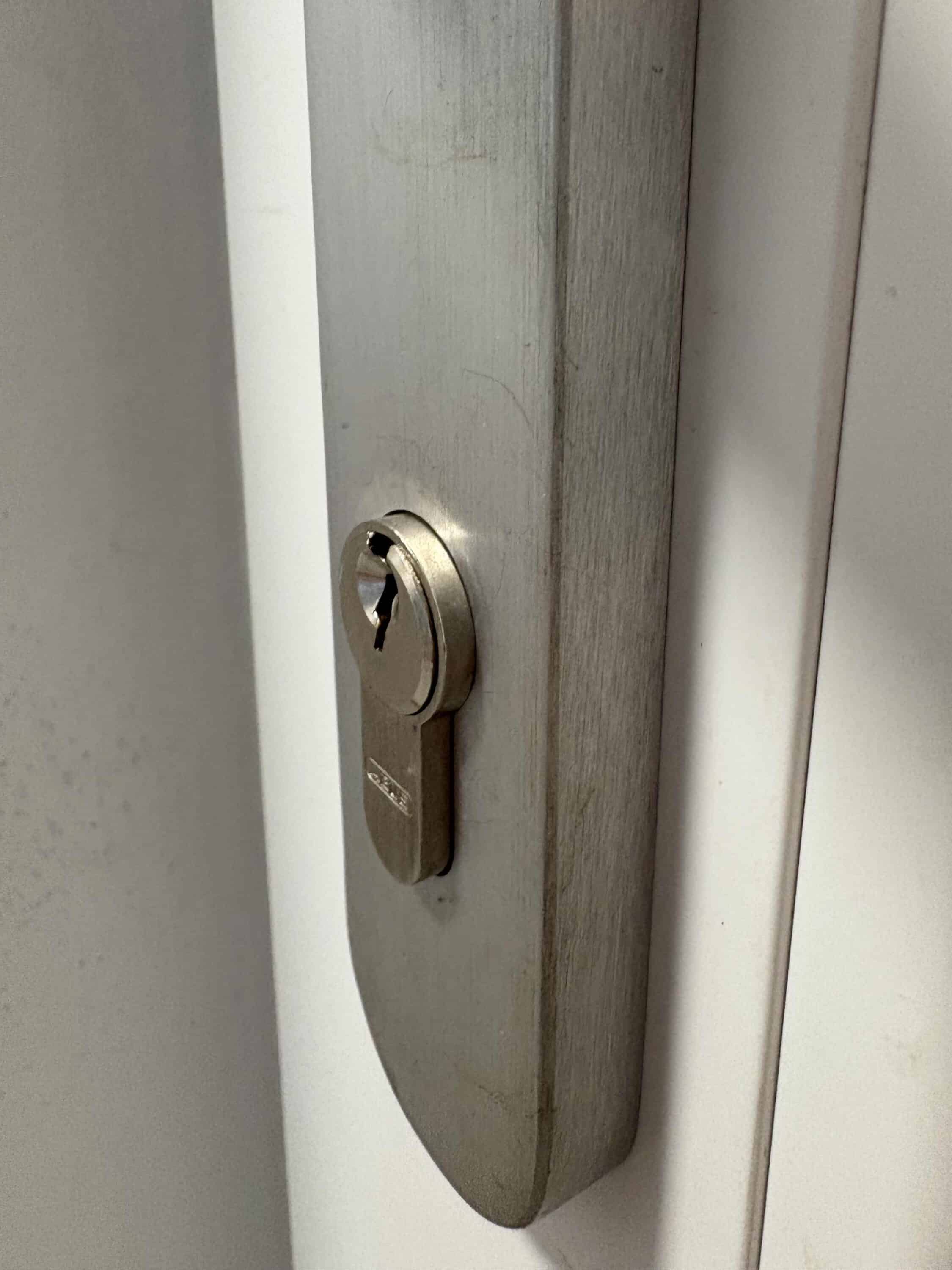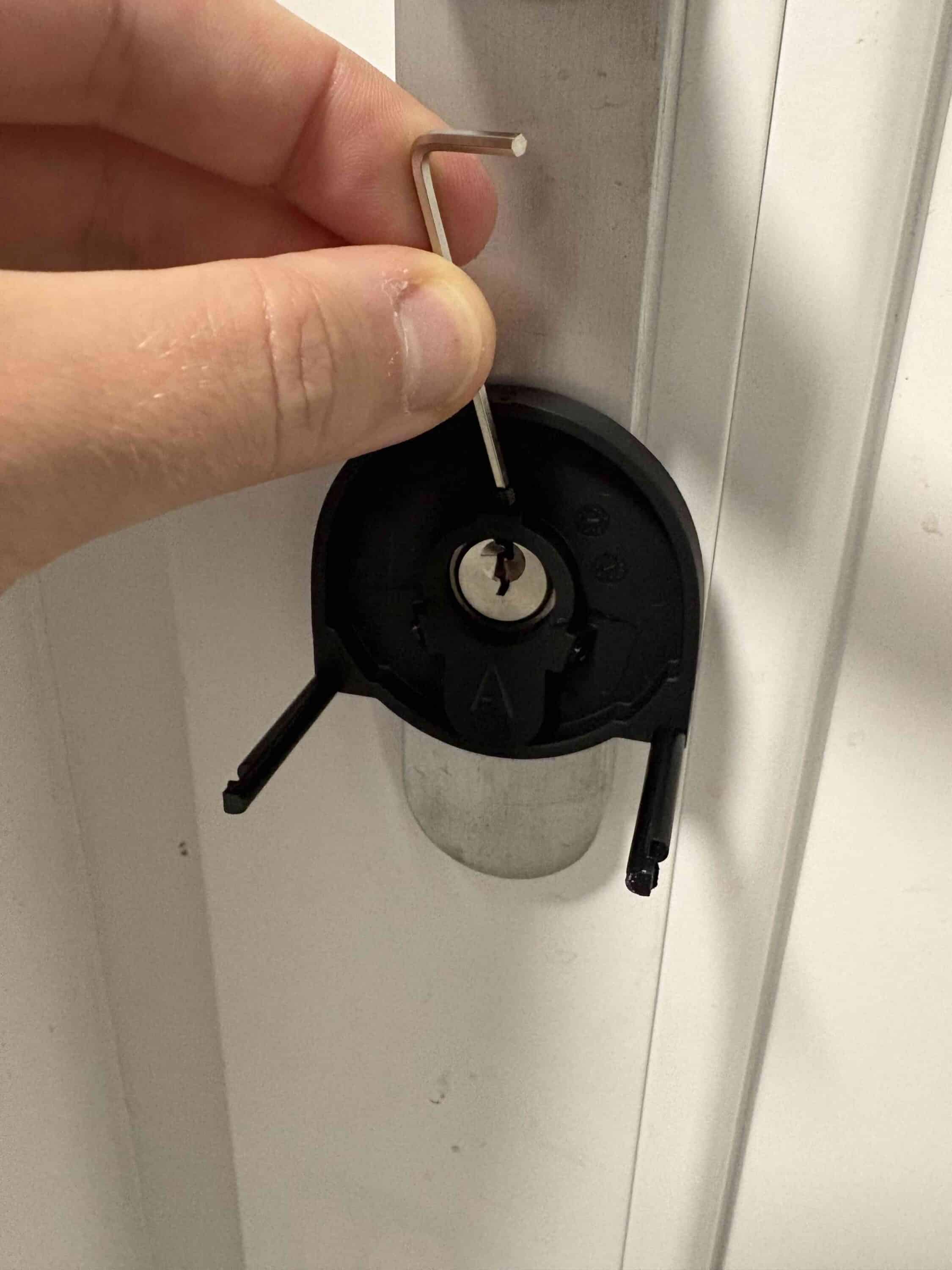 If it does protrude, screw the plate tight. Fortunately, a suitable tool is included. Then insert the key into the lock and put the smart lock on. You can now attach the lock to the mounting plate using the knobs on the side.