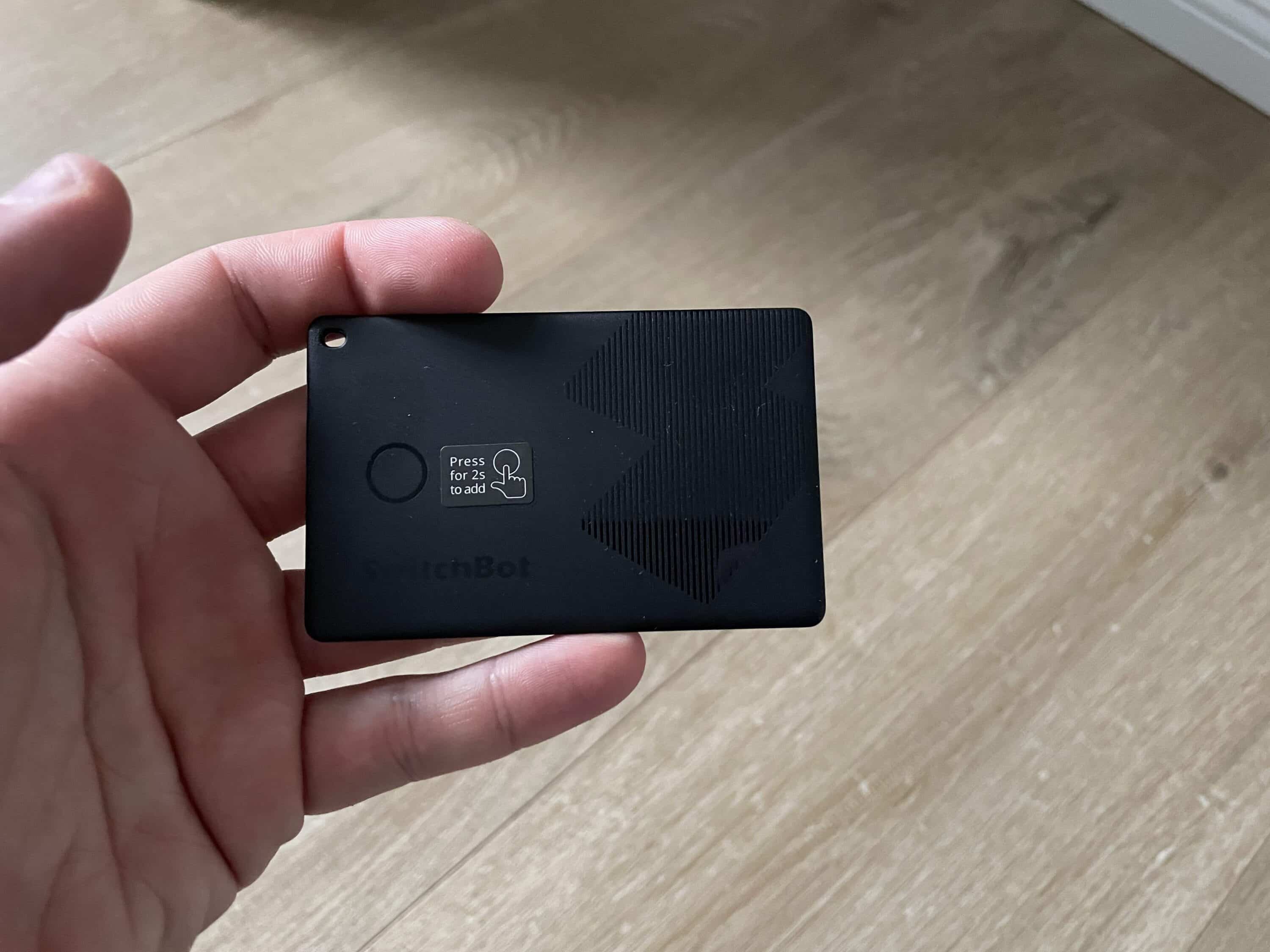 The card itself not only features the company logo and a stylish lightning-shaped pattern. SwitchBot has also provided the card with a hole in case you decide to use it as a kind of key fob. There is also a circular touch button on the top. We will explain what this is for later.